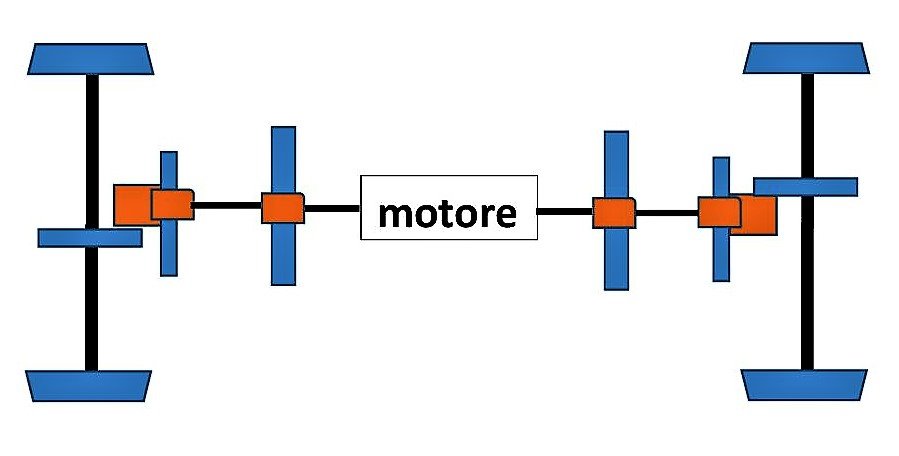 Mandaci un schema, magari uno schizzo fatto a penna, così ci sappiamo orientare. Perché le ruote motrici si accoppiano al differenziale con un rotismo esterno! La ruota motrice ha la ruota dentata al centro dell'asse o attaccata alla faccia interna della ruota?