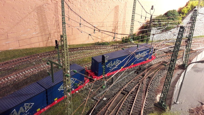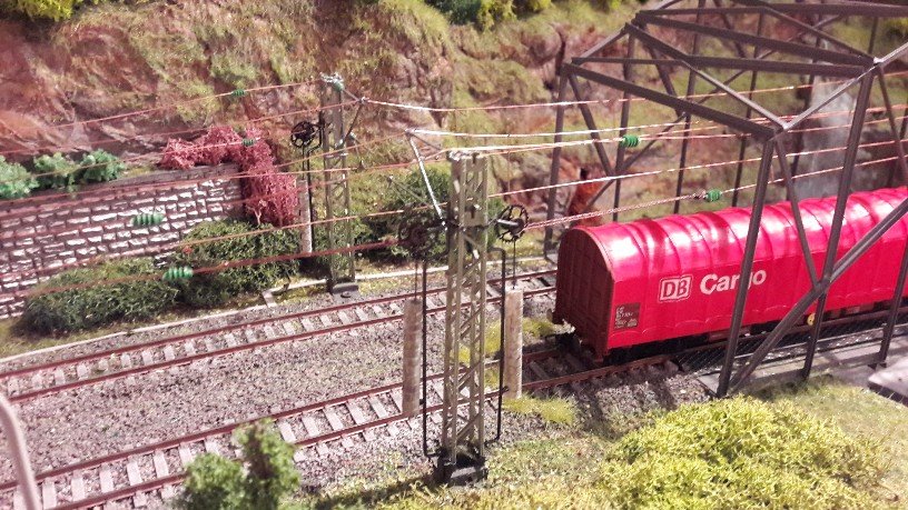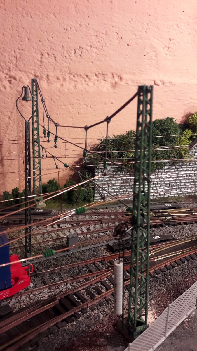 Solo una curiosità: dalle foto si vede che hai usato i tenditori a "singola ruota"( in uso epoca III e IV), mentre su linee con velocità oltre i 100km orari ed anche in epoca attuale sono in uso i tenditori a "doppia ruota". La mia non vuole essere una critica, ma visto il tipo di convogli circolanti, farei la modifica.