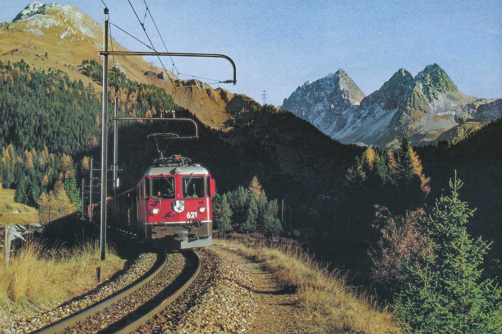 Il primo è un GmP (treno merci con servizio passeggeri) trainato della Ge 6/6 I, il famoso “coccodrillo” della Retica.