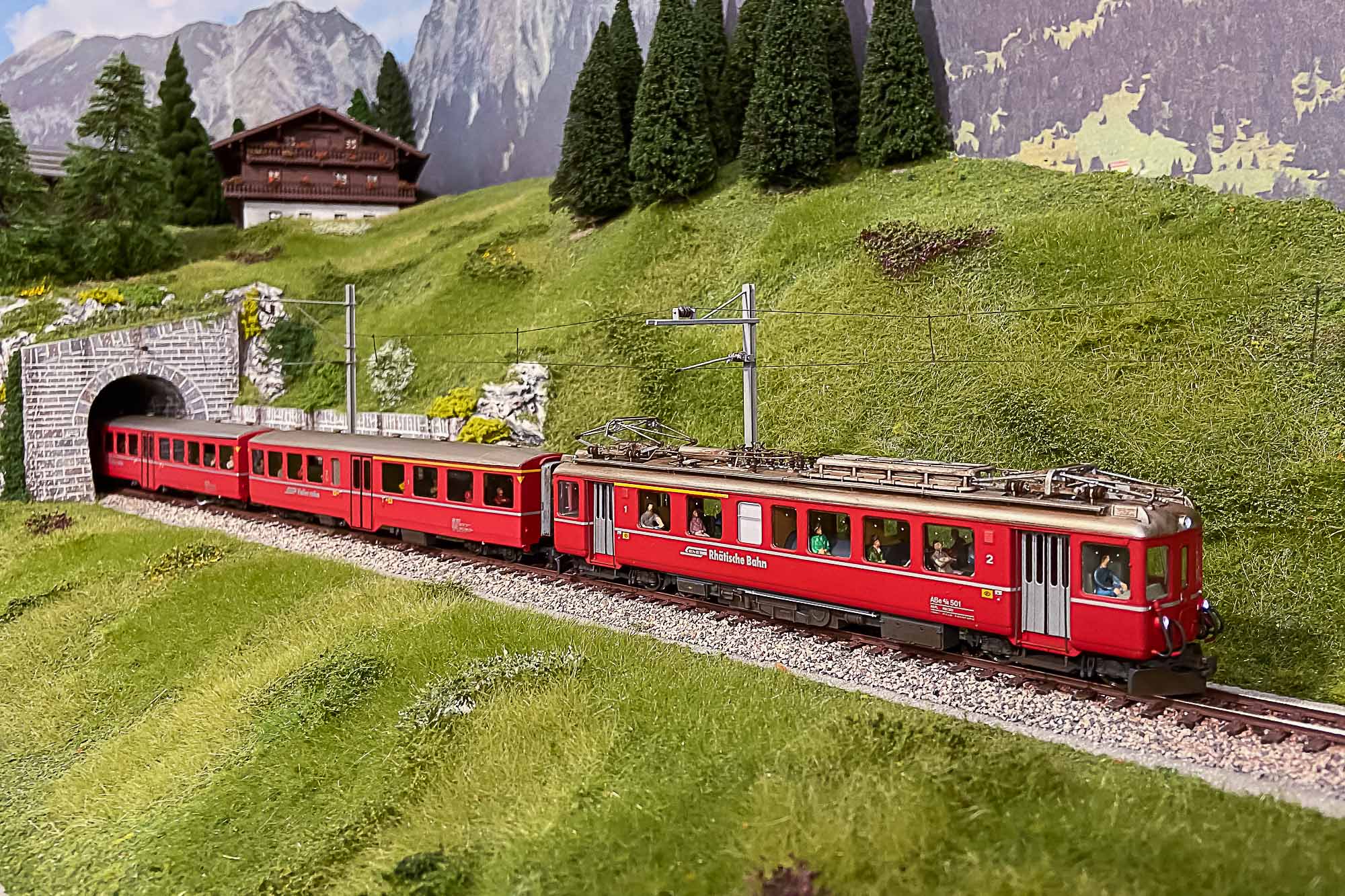 Questa volta è stato il turno di una nuova automotrice (ABe 4/4 501) e 5 carrozze RhB: mi sono occupato di inserirvi i personaggi seduti.