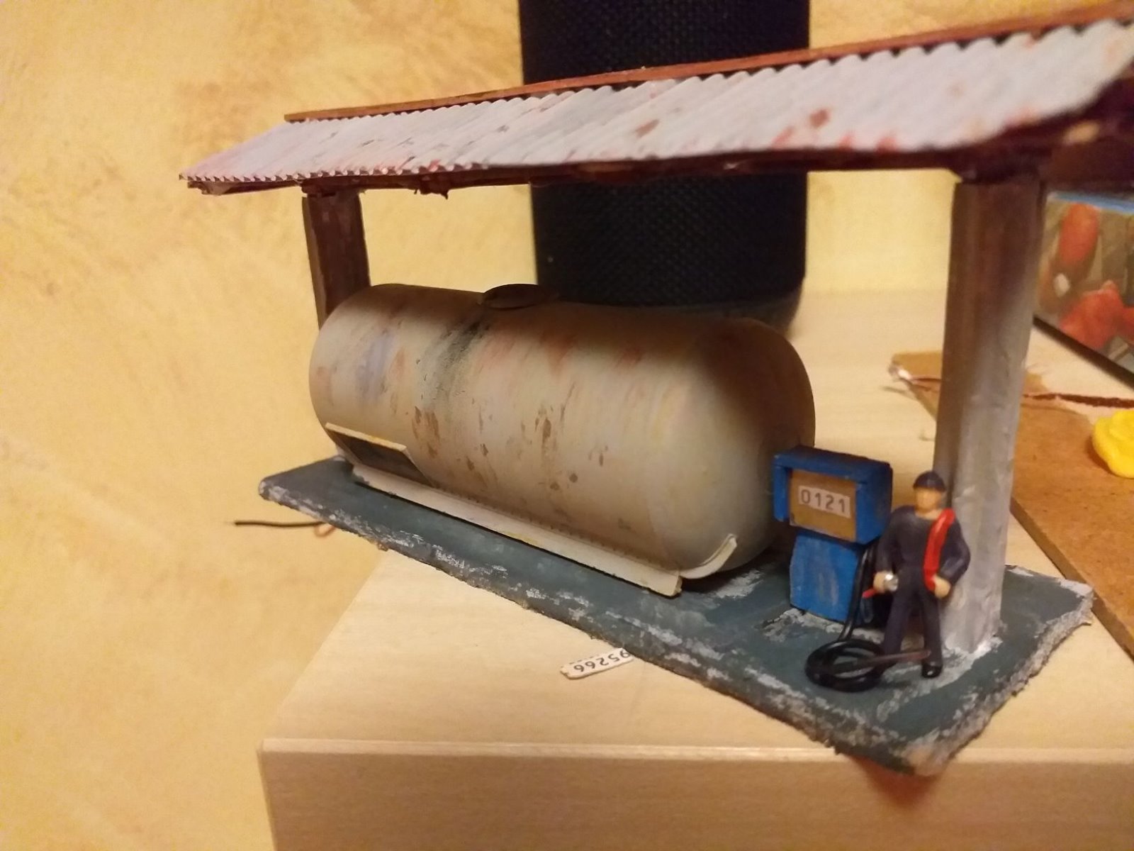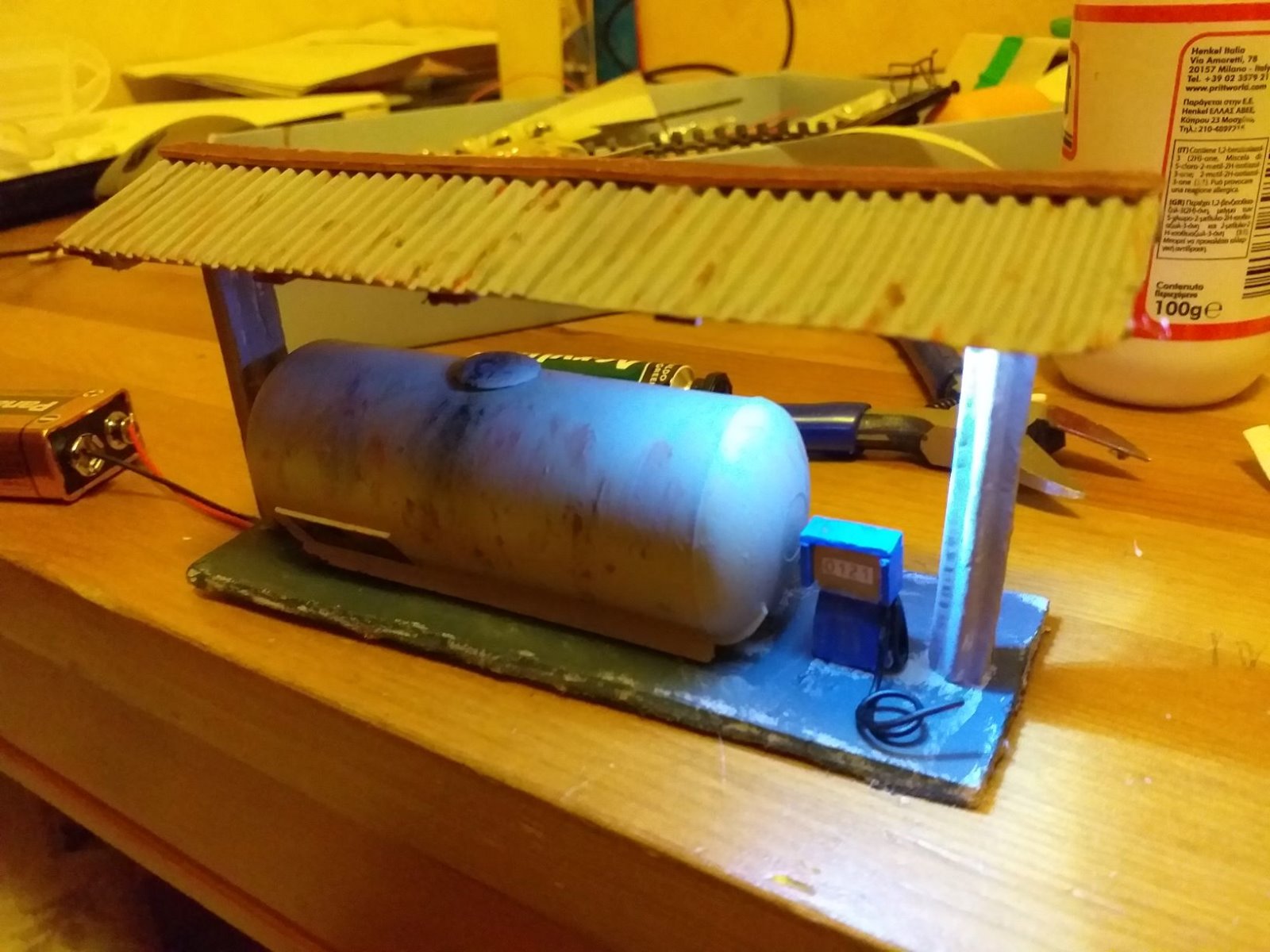 Per il distributore di gasolio ho utilizzato dei legnetti, incollati tra loro. Il tubo invece è un cavo elettrico da 0,14mm.
