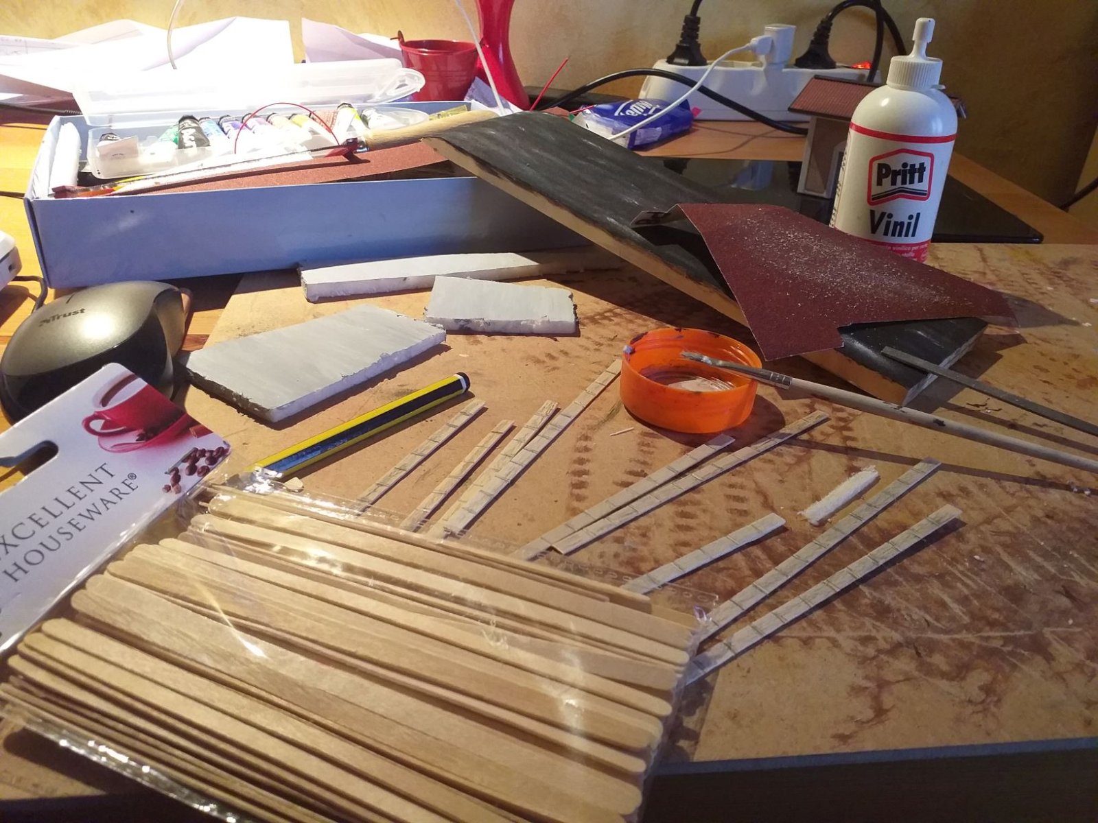 Come materiale per realizzare i mattoncini ti consiglierei il Forex che si puo lavorare ed incidere, il legno lo userei per altre cose, in alternativa visto che la base è pronta potresti provare la gomma crepla, è una gomma facilmente lavorabile, basta un lapis e poi la incolli al posto del legno.