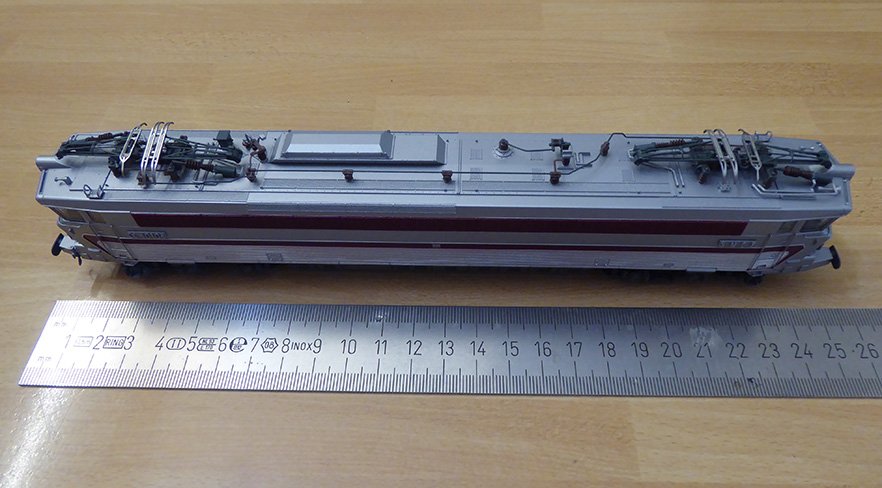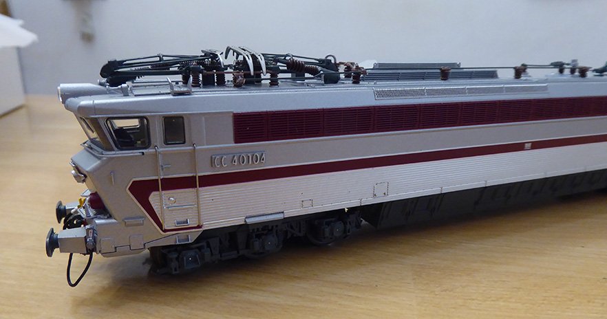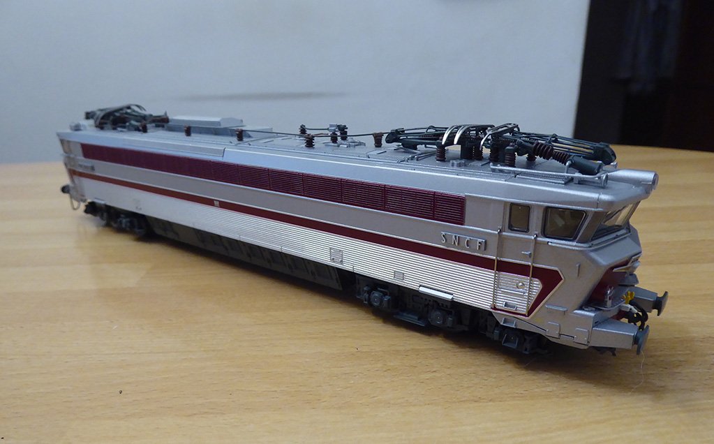 Era una macchina anche abbastanza delicata e complessa da mantenere, a quanto ho letto, tuttora conservata ed in possibile stato di marcia ; L.S Model , ci ha restituito una riproduzione estremamente fedele e dettagliata , specialmente sui frontali, non manca assolutamente nulla, un colpo d'occhio osservarli, ed il caratteristico baffo, così come il complesso imperiale a tre pantografi ; di primo impatto , la verniciatura eccellente complessiva , tantochè sembra in vero alluminio ; la caratteristica principale è il design particolare, può piacere o no, con i frontali obliqui, uno stile agressivo che che le ferrovie francesi hanno continuato a mantenere sino ai giorni nostri, anche su locomotive diesel, evidentemente con i suoi vantaggi per la visibilità del macchinista ; il modello è pesantissimo supera i 500 gr, l'unica cosa fastidiosa è la sua estrazione dalla confezione, avvolto in carta velina e trattenuto da gommapiuma e non è una cosa affatto pratica, si ha sempre paura di danneggiare qualcosa, riporlo poi, ancora peggio ; ho visto video di questo modello digitalizzato e merita veramente farlo, favoloso..piuttosto non so se siano state prodotte le carrozze dedicate per la composizione TEE in alluminio vivo vergate, o meglio, mi risulta che solo Jouef le abbia prodotte in scala esatta, ma reperirle ormai , non è facile . Comunque un modello che necessita di raggi di curvatura i più larghi possibili, costringerlo a circolare in curve ristrette sarebbe sicuramente ridicolo ed antiestetico . La scala risulta estremamente perfetta !