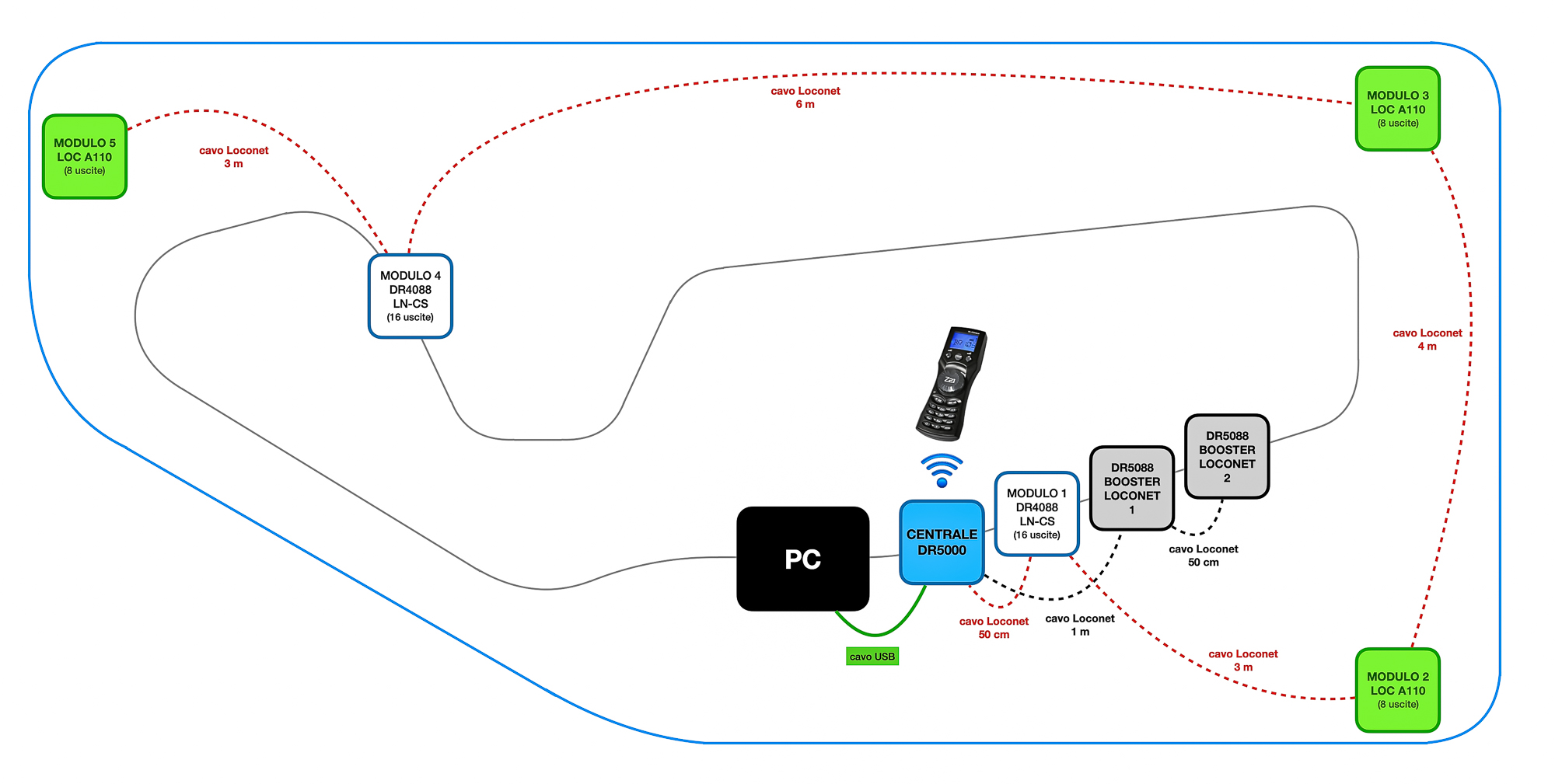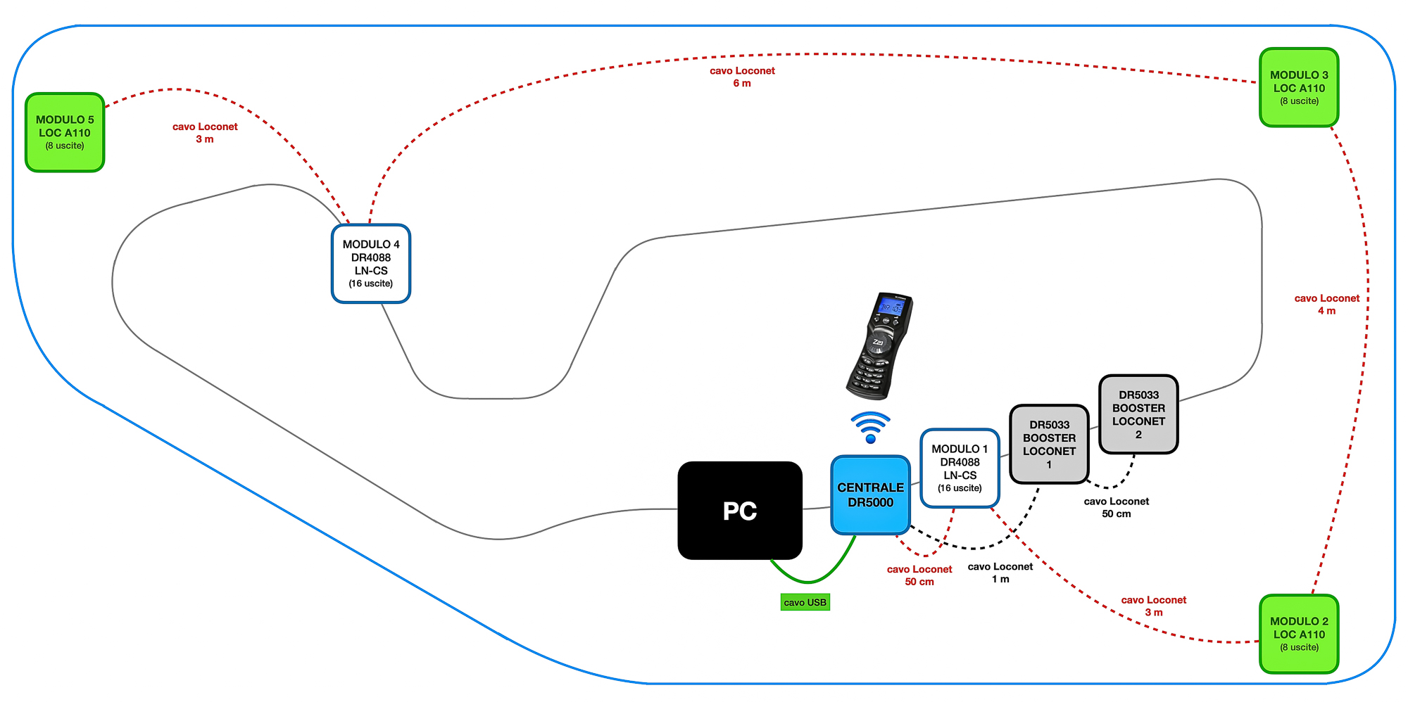 La centrale scelta è la Digikeijs DR5000, affiancata da due boosters DR5033.