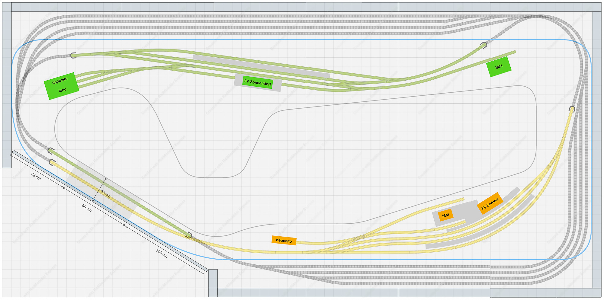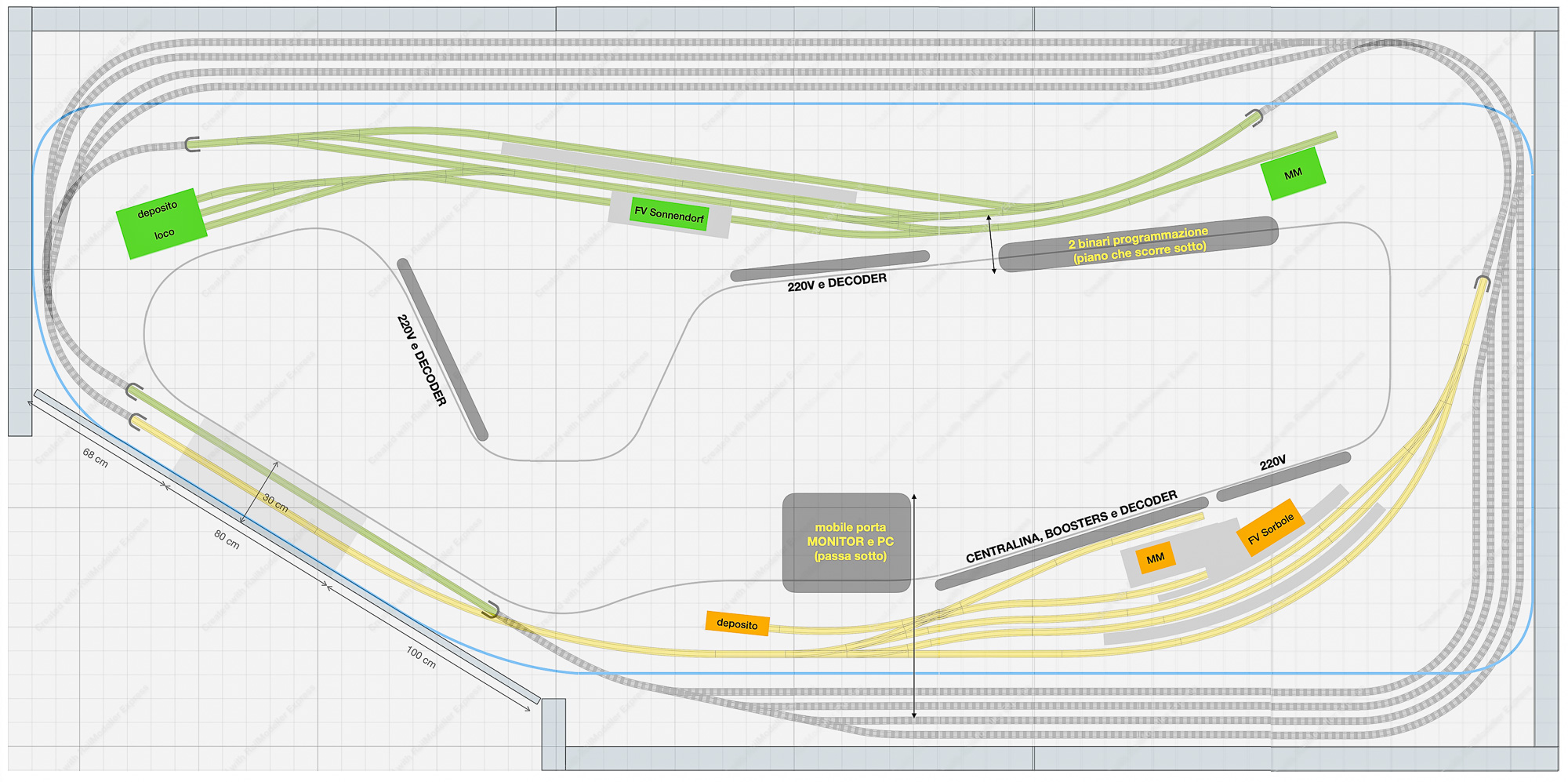 E' una prima bozza, devo ancora rifletterci ed elaborare il disegno comprensivo del sottostante plastico in H0.