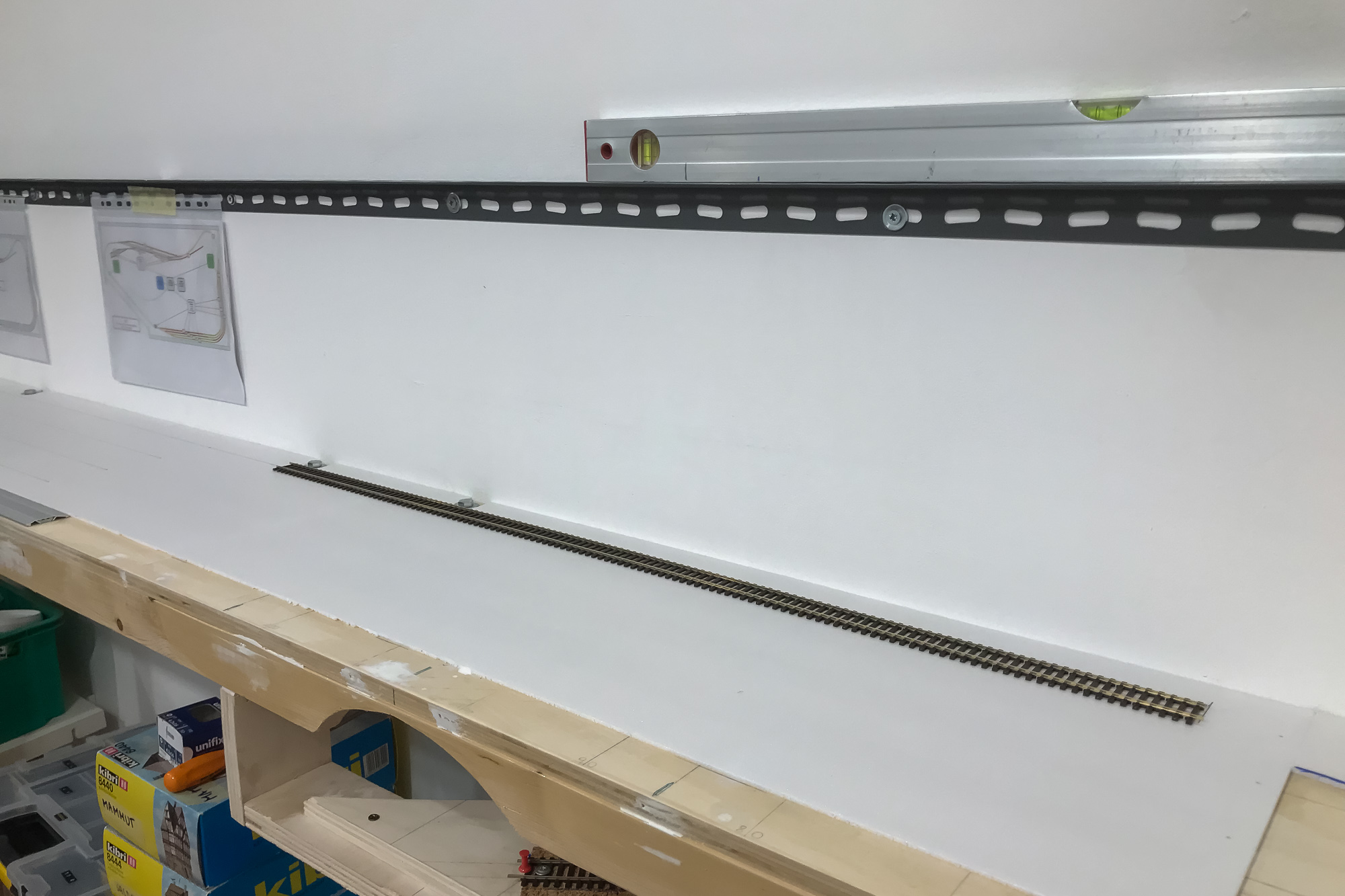 Fissato il tutto provvisoriamente (fondale compreso) e poi posato il binario senza fissarlo.
