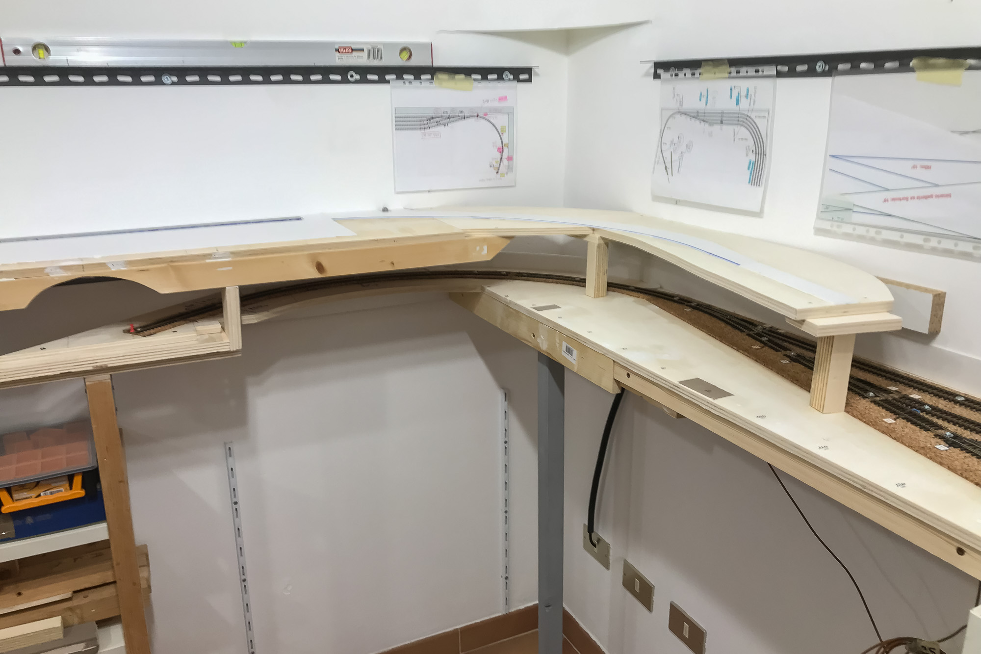 Ho poi costruito la struttura che sostiene la curva che dalla stazione nascosta conduce verso la parte a vista: è uno dei due tratti in cui le linee FS e DB passano l’una sull’altra.