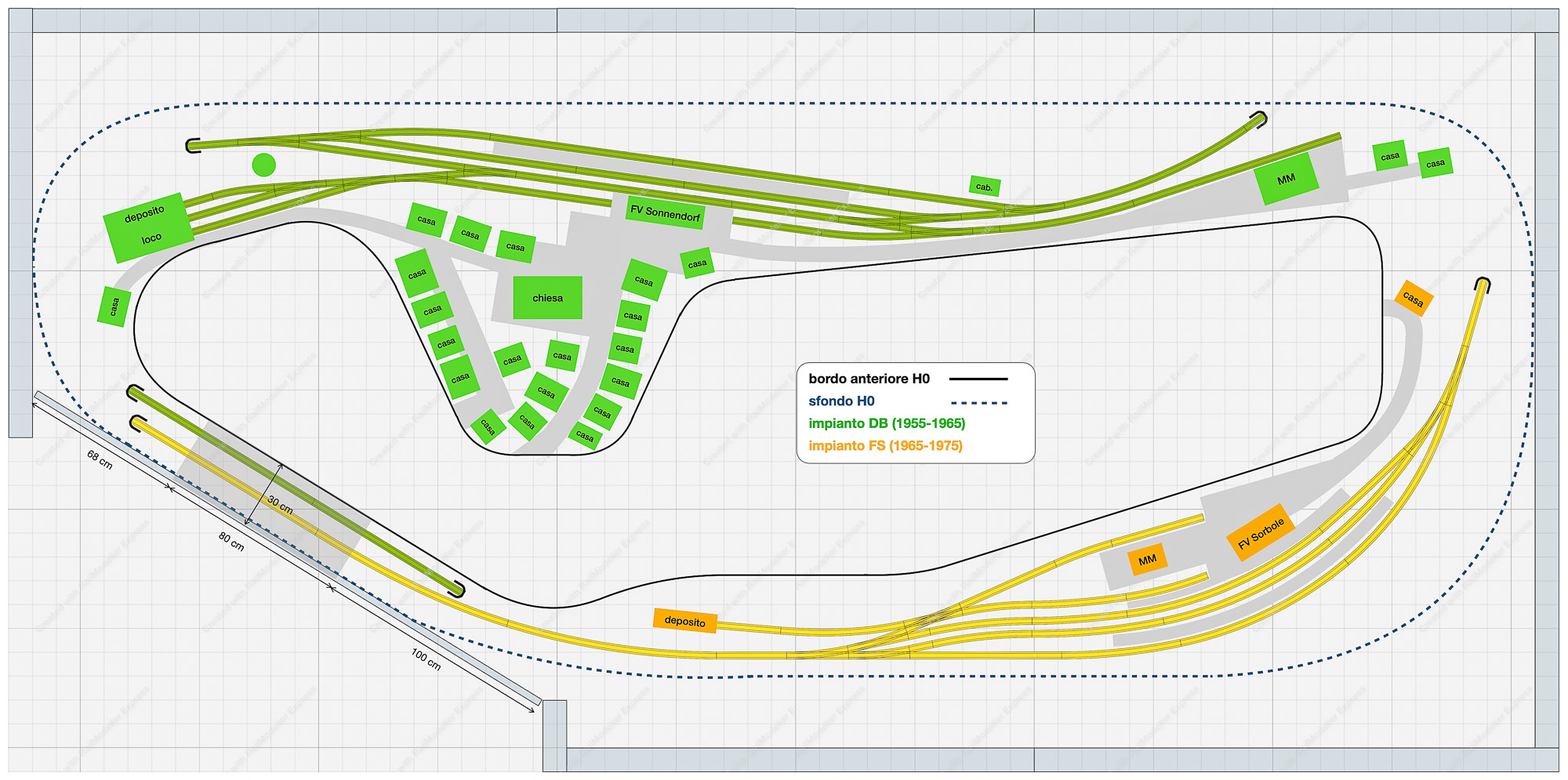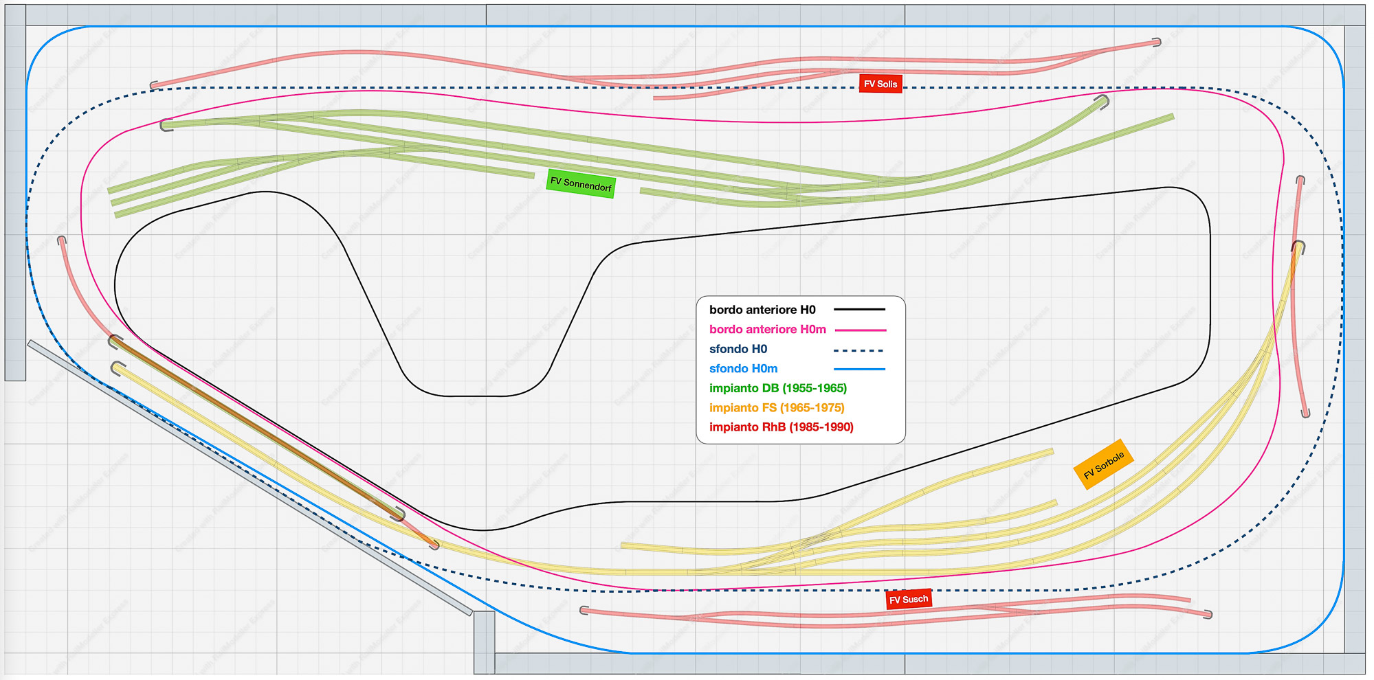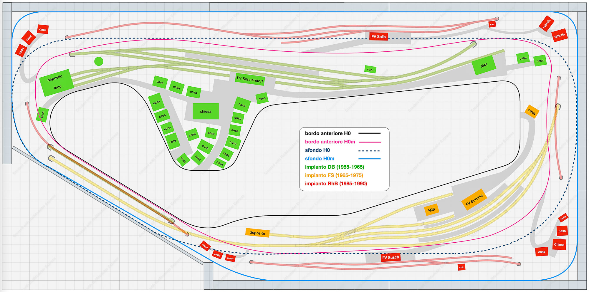 La novità, su tuo stimolo, è rivedere la forma del bordo anteriore di quello H0m inserendo delle leggere curvature che seguono il tracciato ferroviario al posto di un andamento parallelo alla parete di fondo.