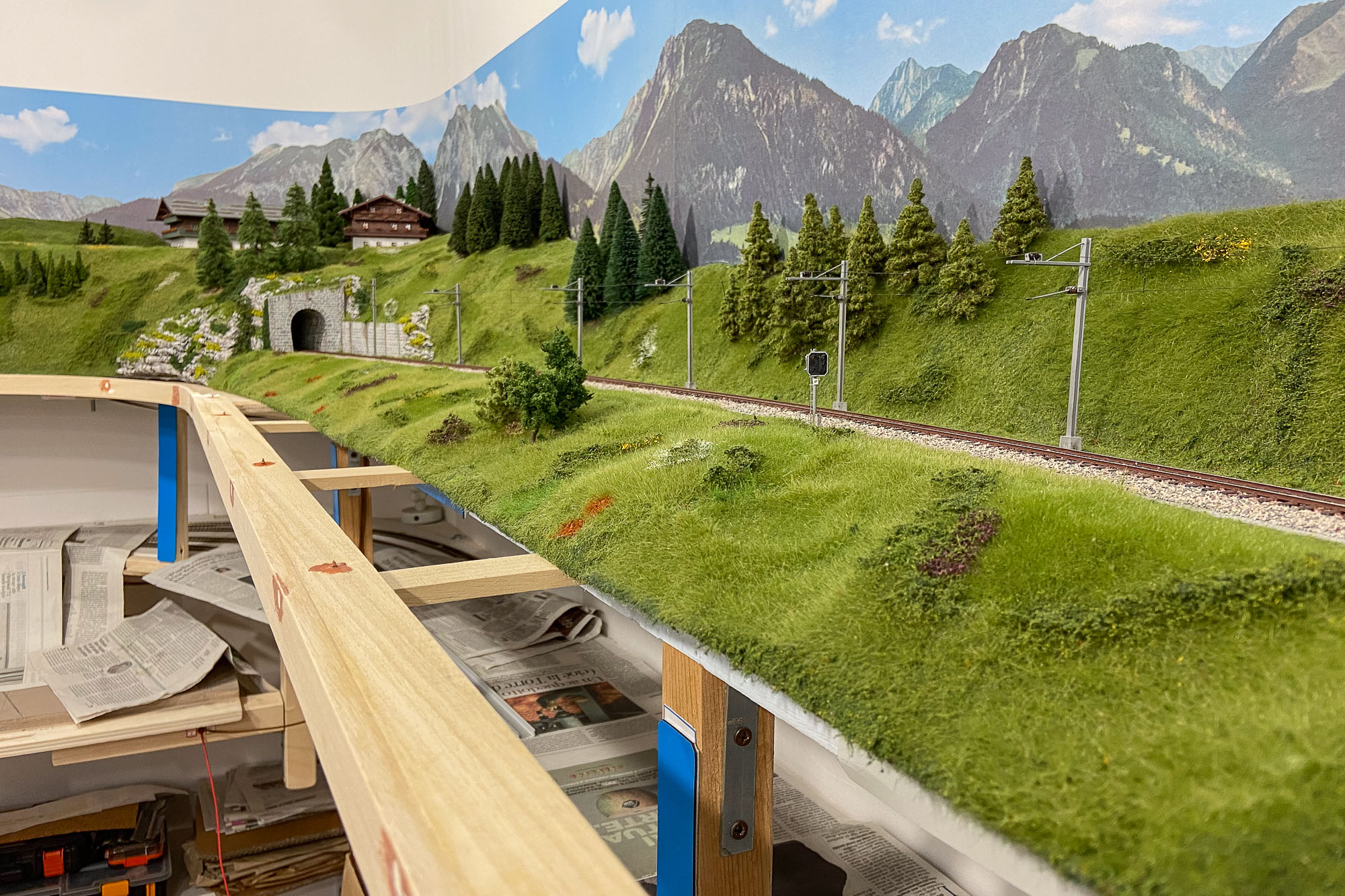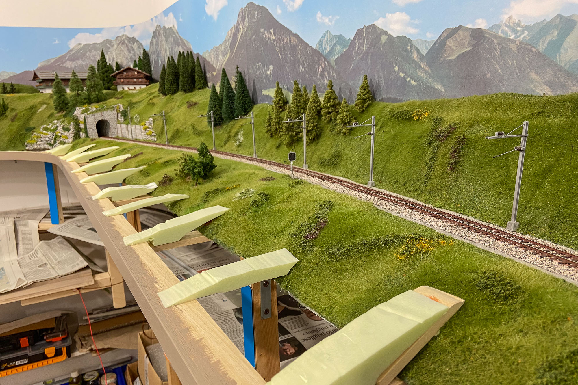 Però se avessi sin da subito pensato all’illuminazione appesa sotto al bordo del plastico RhB avrei faticato meno.
