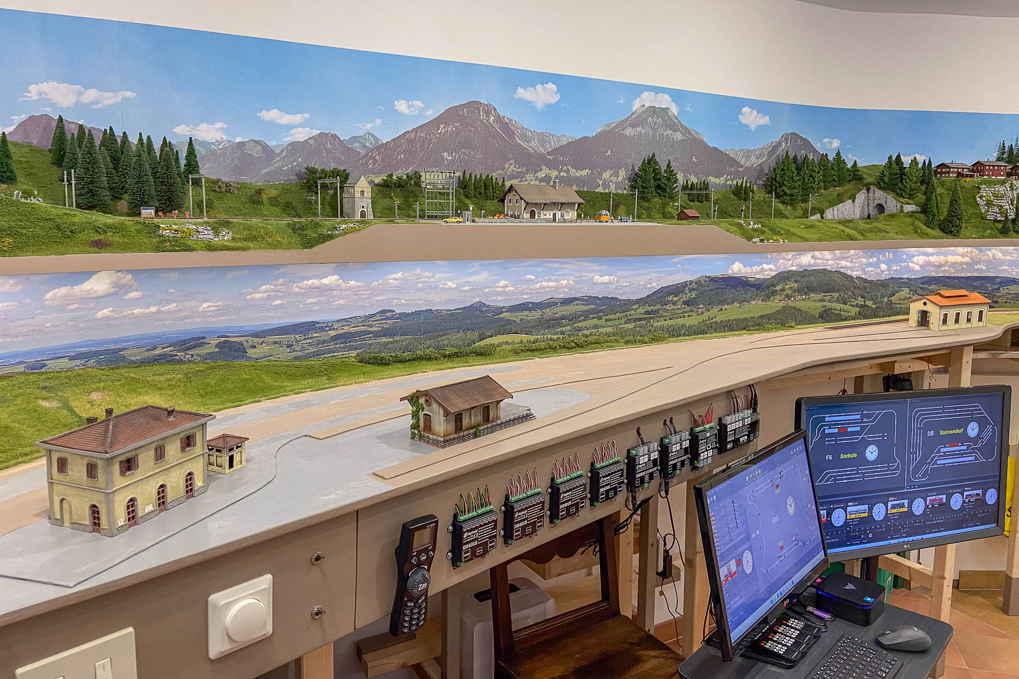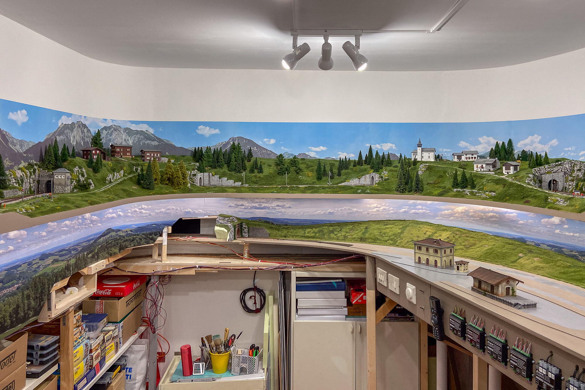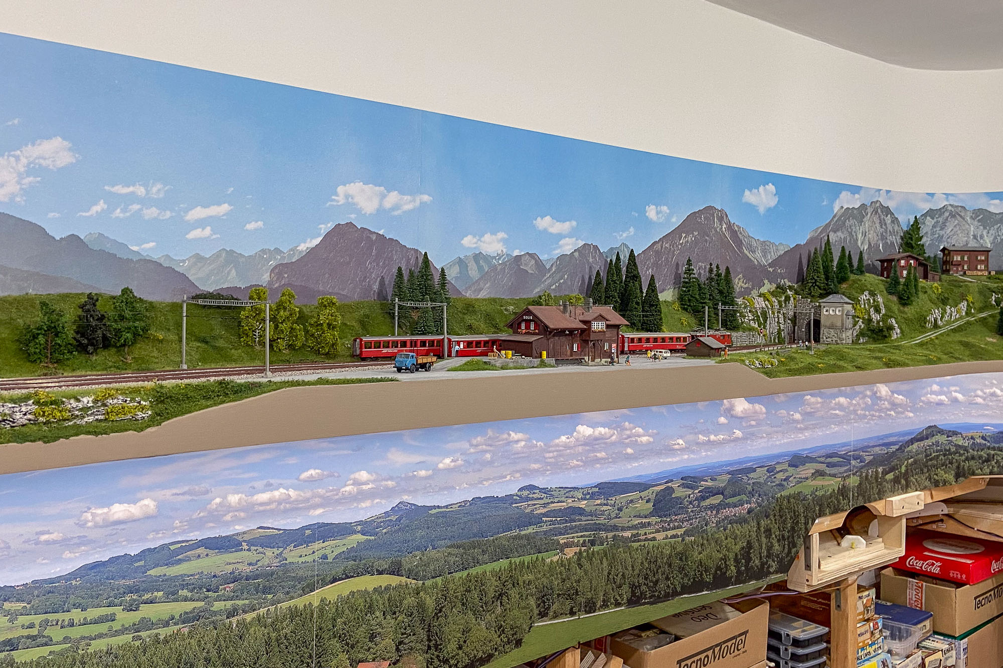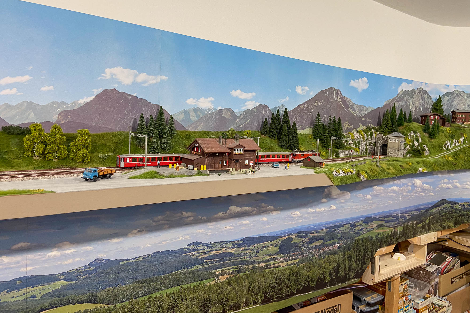 Ma soprattutto manca l’istallazione della striscia di Led per cui il plastico alto proietta ancora l’ombra sullo sfondo di quello basso.