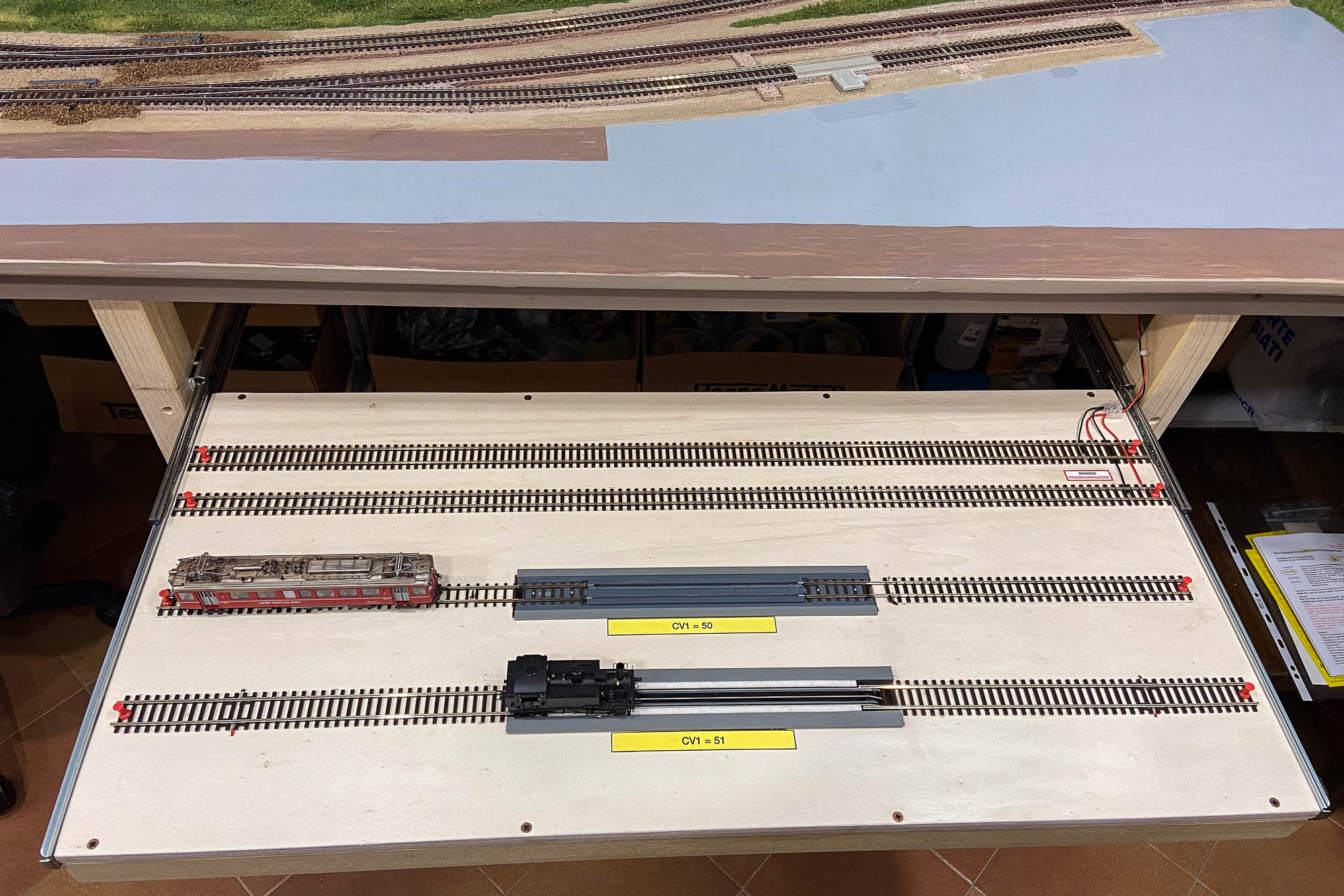Ottima idea. E' quello che vorrei fare anch' io utilizzando il piano dei binari di programmazione che ho collocato proprio come Luca sotto il plastico. Tra l'altro il mio chiamamolo banco di programmazione e' costituito da 2 binari. in ordine di collocazione il primo serve per testare le locomotive in analogico mentre il secondo lo utilizzo per le locomotive in digitale. Aggiungo inoltreIpGio ha scritto: ↑domenica 6 aprile 2025, 9:30 Luca, una domanda... non hai pensato di integrare il sistema di pulizia che hai progettato con i binari di programmazione, ammesso che si possa fare?