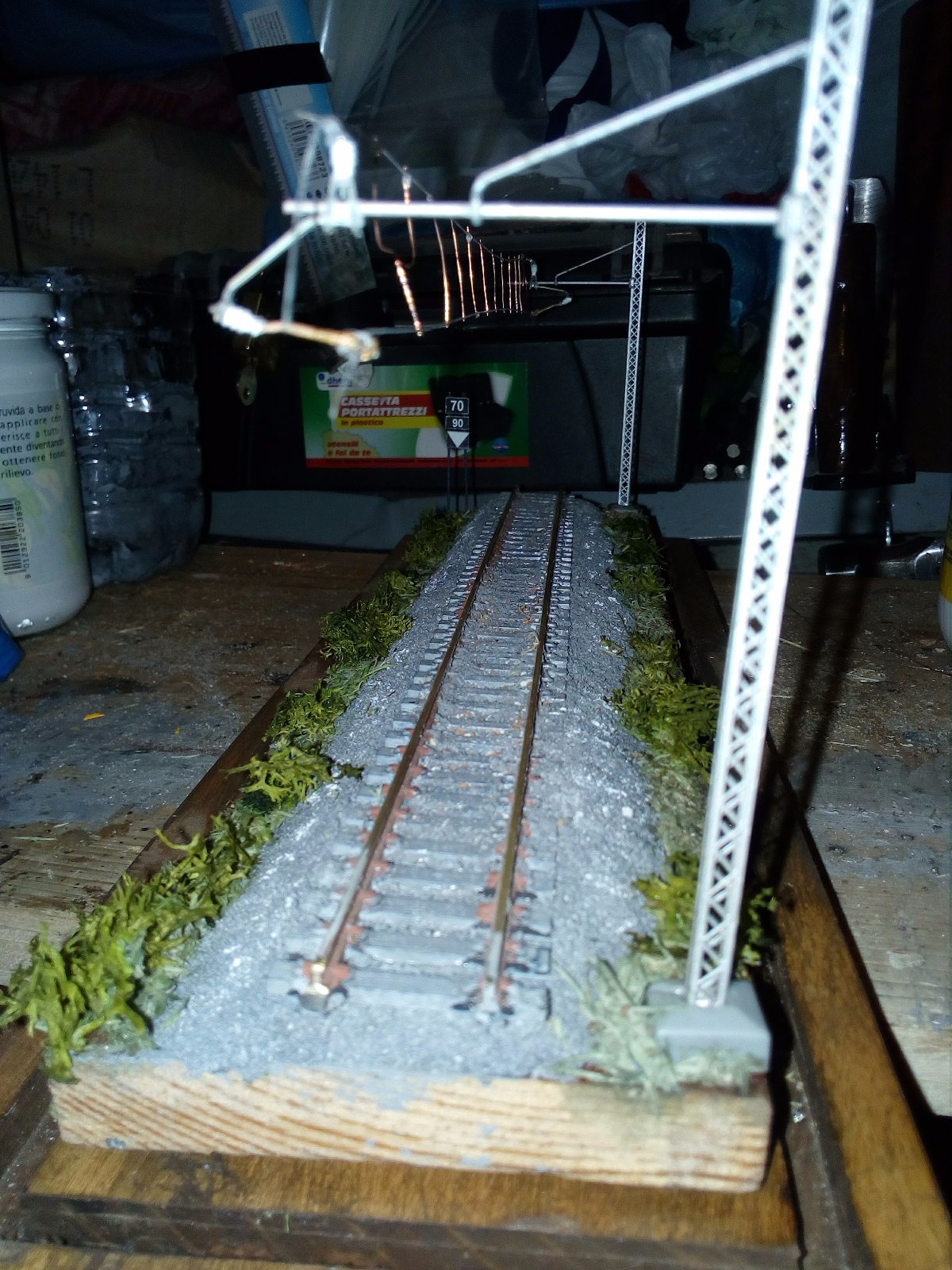 I pali li ho presi come HO credo che siano in HO, forse...la massicciata l'ho messa a mani senza ausili di strumenti, è sabbietta per uccelli colorata con acrilico ed impastata con vinilica ed acqua saponata.