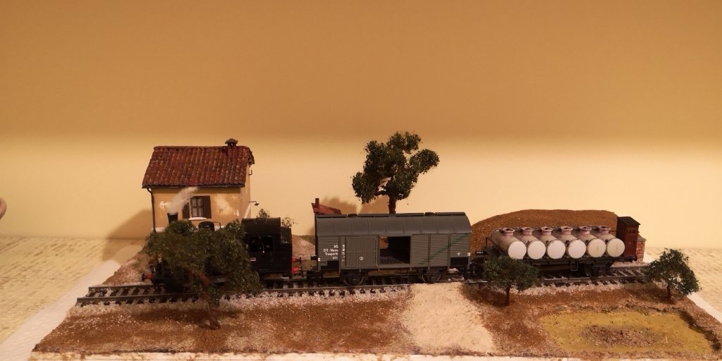 Ecco trovato il tema per il diorama, una linea secondaria a trazione a vapore con ambientazione primo dopoguerra, dove un piccolo convoglio porta il vino prodotto dai produttori locali verso i mercati di sbocco.