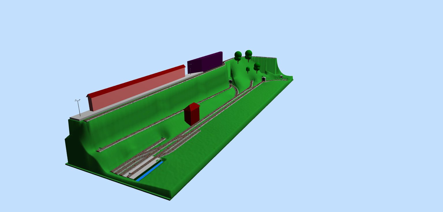 Il cappio sarà fatto come tu consigli per una migliore visione. Riesco a recuperare circa cm. 60 in profondità in aggiunta alla misura in progetto ma con sistema modulare o ante verticali sollevabili per mezzo di cerniere e messi a livello sul piano principale. Il binario dietro non è parte nascosta ma come gentilmente puoi vedere dalla foto 3d è un tracciato in altura che prevede un futuro continuo sul l 'altro lato della parete.