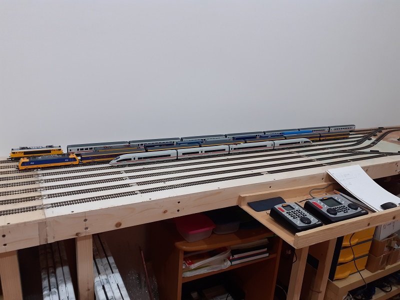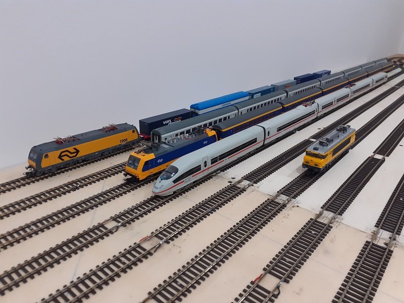 Per il tipo di esercizio, legato al progetto definitivo, ho in mente di realizzare una stazione di confine tra Olanda e Germania (come per esempio la stazione di Bad Bentheim) dove poter far transitare gli intercity express (tipo gli ice 3 o i thalys), come gli ic Amsterdam/Hengelo/Berlino, dove nella citata stazione fanno il cambio loco ( solitamente tra le class 1700 NS e le E185 DB). Non mancano poi i così detti "stop train" sia DB che NS.