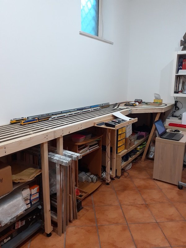 Sono consapevole che quello che ho in mente risulta ambizioso ma... non ho fretta, stimola la fantasia e la creatività, mi piacciono i treni i scala anche se sono li fermi ad attendere un tracciato finito...
