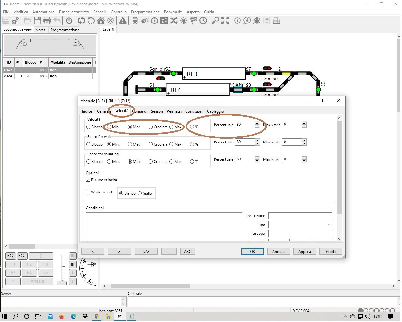 Nel tuo caso invece hai tutta una serie di binari e, credo, una loco non tornerà mai sullo stesso binario da cui arriva. Di conseguenza non complicarti la vita: per ridurre poi la velocità di movimento all'interno della stazione nascosta e quindi anche nel cappio, agisci sulla velocità che ha ogni itinerario. Vai a biffare la velocità media al posto di quella da crociera, oppure scegli un valore percentuale, tipo 35-40% della velocità massima.