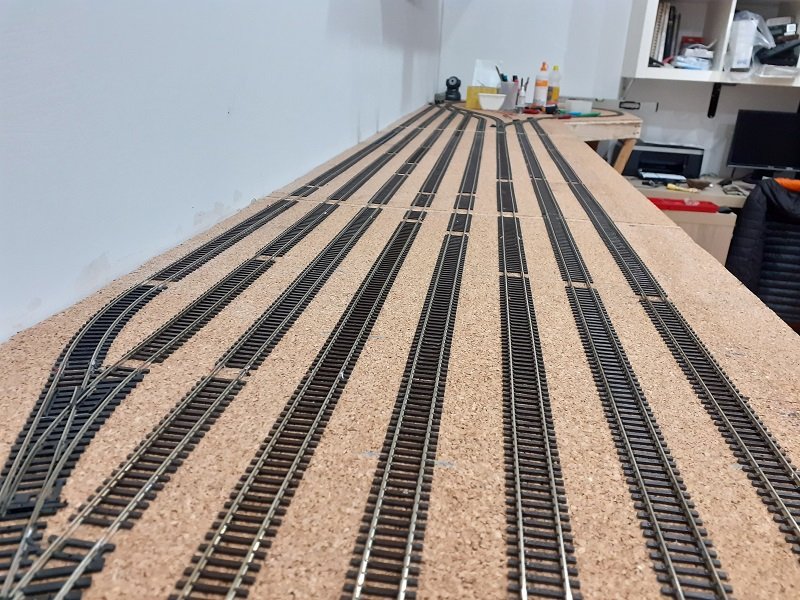 In questo periodo il lavoro mi ha completamente assalito (per fortuna). Non ho avuto moltissimo tempo da dedicare al mio "giocattolino", ma sono riuscito intanto a "rimettere" il sughero sotto i binari come da suggerimento.