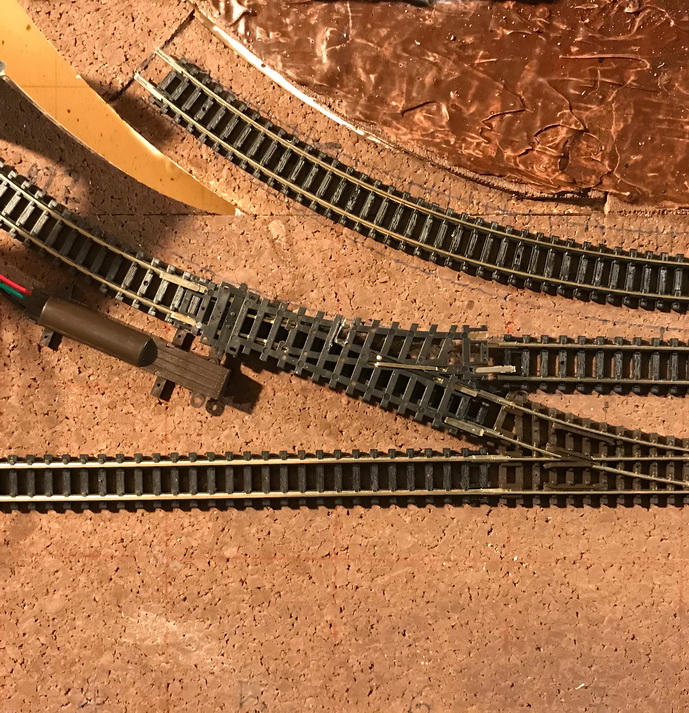 1_ metti il motore sotto e collegandolo con uno spezzone di filo armonico inserendolo in un piccolo foro praticato nell'astina che muove il deviatoio