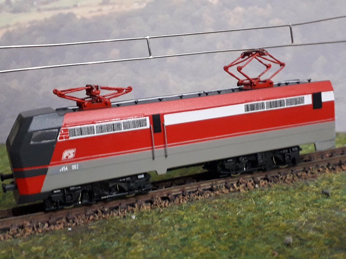 Una E 454 per i treni navetta, la 002 (cassa da Ebay di E 453 elaborata, su meccanica Kato)