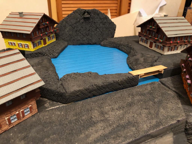 Visione prospettiva sopra lago e centro diorama