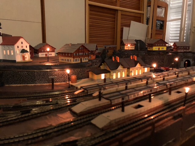 Un bel vedere il plastico a buon punto, l'illuminazione stradale è ben bilanciata creando zone di chiaro è scuro