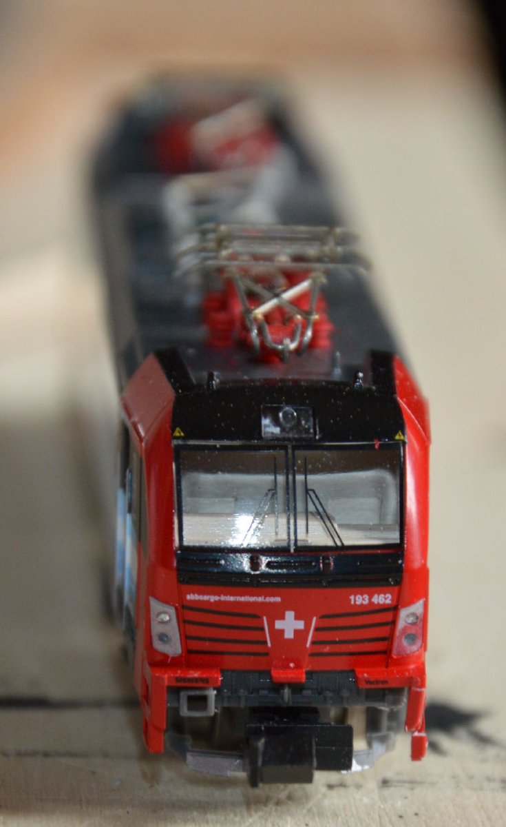in questi giorni sono andato avanti con i lavori, alcuni definitivi altri posticci, volevo chiudere il circuito dei binari in modo da controllare tutta la parte definitiva dei due elicoidali con treni a lunghezza adatta al plastico. Avevo già provato le pendenze con convogli completi. e collaudatore ponti (gatto) ho poi provveduto a montare gli anti caduta ahimè troppo tardi ho voluto fare una prova di troppo e patatrak la loco per terra, è andata ancora bene solo il musetto ha subito danni ma se la parte colpita la metto dietro e ci attacco i carri quasi non si nota. per la protezione ho utilizzato il plexiglass trasparente così in pratica sparisce.