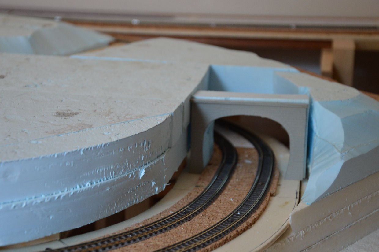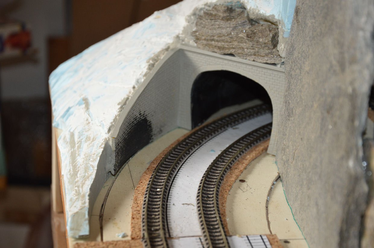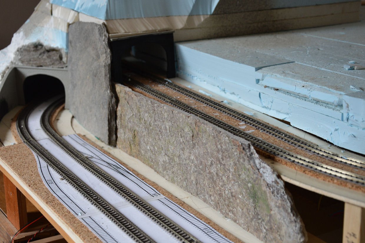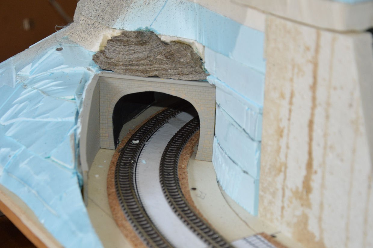I fogli che hai usato sono poliuretano espanso, lo usati anch'io, sono ottimi anche perché si lavorano e non fanno i pallini come il classico polistirolo, o visto che hai come me realizzato anche l'interno delle gallerie, io ho preferito prima di colorare stuccare con lo stucco a pasta fine la volta, mi sono trovato meglio in fase di colorazione