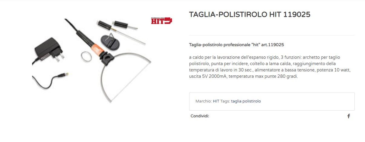 il mio taglia polistirolo è della HIT professionak tools art.119025 da 10 W