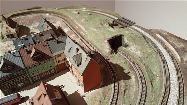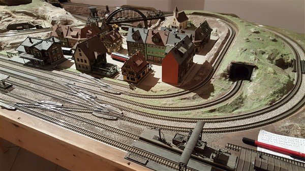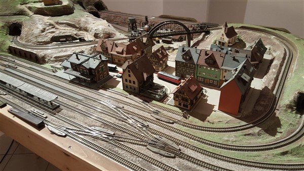 Ti chiedevo il piano dei binari perchè non si capisce dalle piccole foto (storte) che hai messo dove ad esempio va a finire la linea più interna che passa sul ponte e si infila nella montagna: c'è per caso un cappio di ritorno?