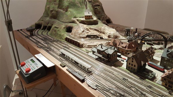 Mettervi mano ora come è strutturato dovremmo stravolgerlo a tal punto che rifarlo converrebbe maggiormente, si dovrebbe razionalizzare la stazione principale con solo una doppia linea in entrata ed uscita in modo da avere poi curve più pulite che utilizzano solo una galleria, lasciando cosi lo spazio per un fascio di binari con più respiro. Senza diventare matti dividerei il plastico in due piani non collegati in modo da evitare rampe o elicoidali ma per creare al piano inferiore un tracciato passerella ( solo passaggi con poche manovre ) per far transitare convogli internazionali anche abbastanza lunghi. In questo modo nella parte posteriore sotto il piano potrai fare una stazione ombra per far sostare è cambiare diversi convogli. Tracciato semplice per solo passaggi con un minimo di manovre proprio come sulle grandi linee. Mentre al piano superiore creare una piccola linea termica secondaria dove fare una stazione di testa per varie manovre mentre al lato opposto sotto una collina creare un cappio di ritorno. In pratica grazie al digitale avrai due plastici uno solo per passerella , mentre il secondo per manovre. Occorrerà forse utilizzare un booster per aumentare il fabbisogno energetico dei due tracciati