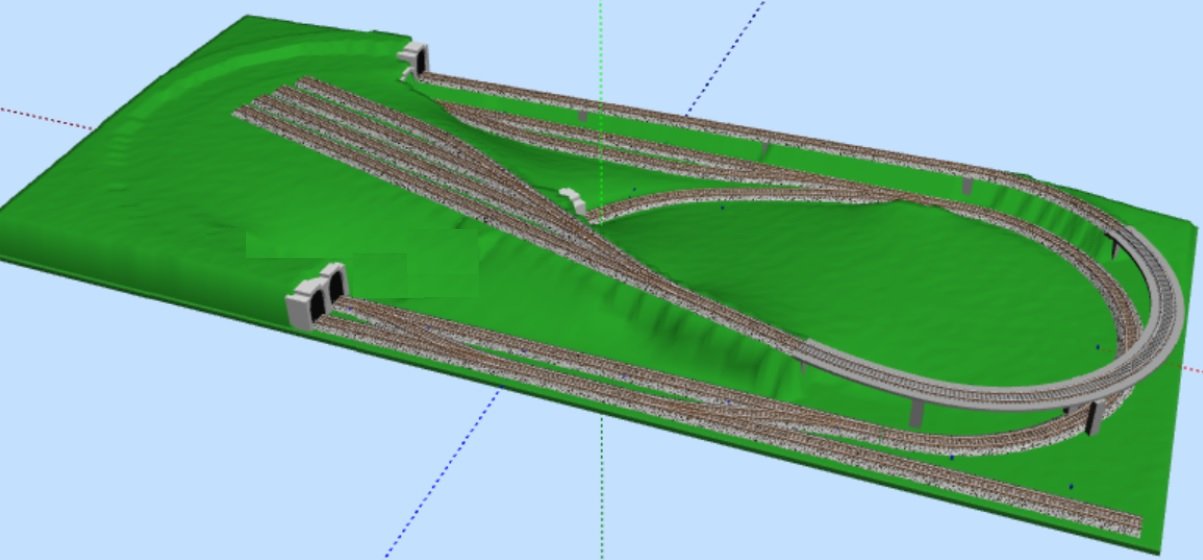 Riuscirei quindi a inserire una bretella per realizare un cappio come suggeriva Mauro e guadagno anche qualcosa sull'altezza del piano stazione superiore (sempre con rampa al 2%) :)