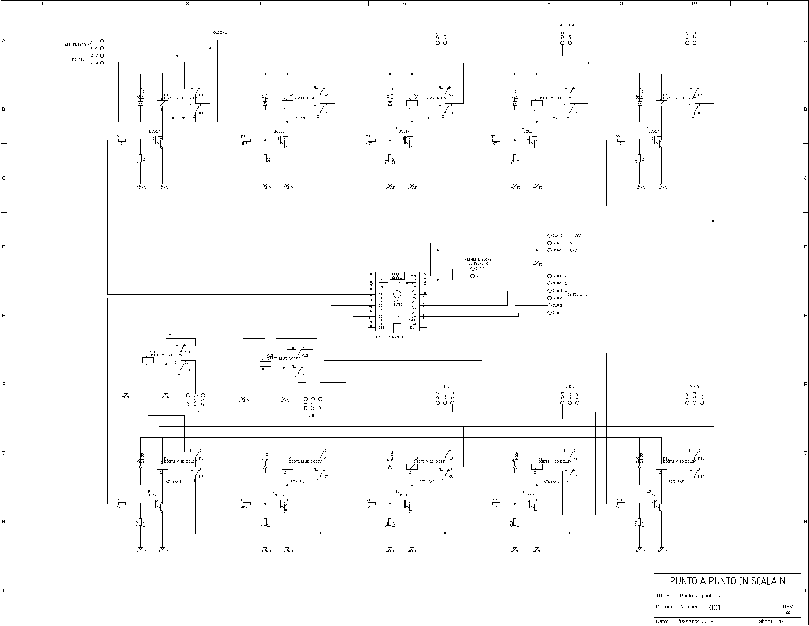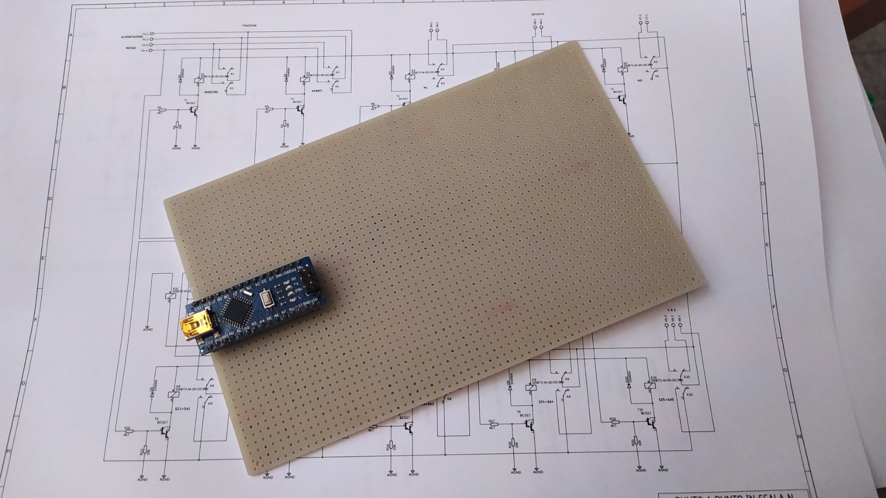 Nello spazio circostante all'Arduino verranno montati dei relè con relativi transistor di gestione (NPN tipo BC547) per il comando dei deviatoi e dei segnali/sezionamenti.