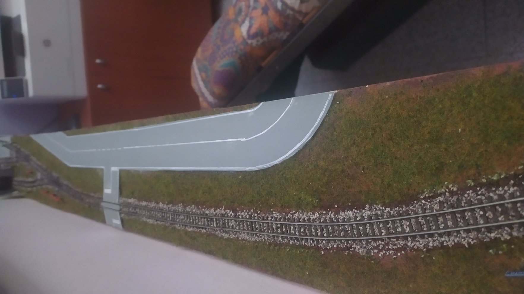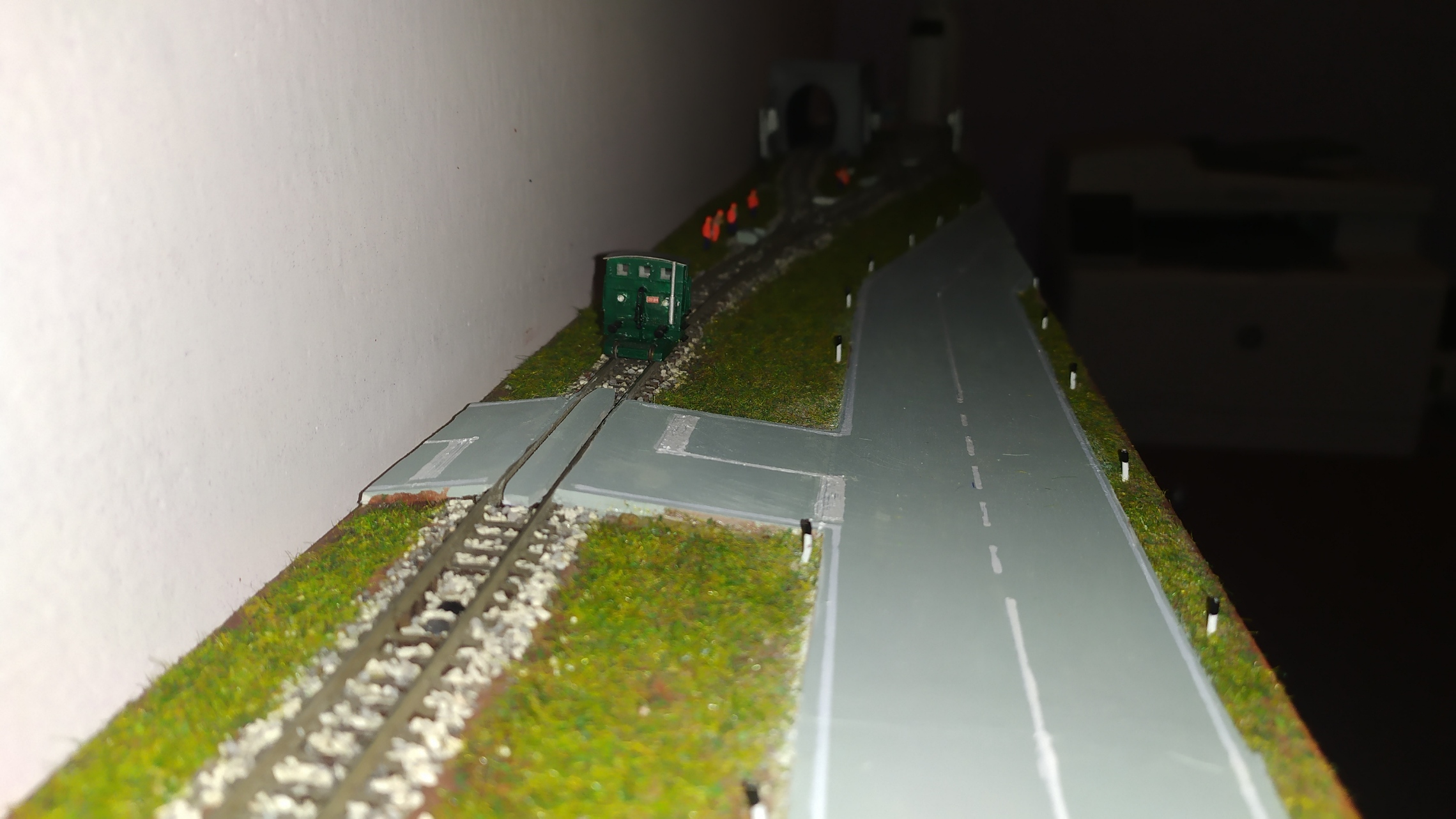 Il fondale rimarrà così o gli darai una profondità, con la strada che continua dopo il passaggio a livello incustodito e tutto il paesaggio intorno?