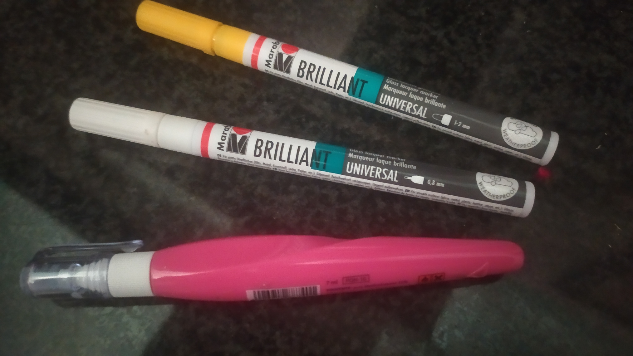 Per la realizzazione delle striscie bianche e gialle sulle banchine ho utilizzato dei pennarelli di vernice sottili e una penna di "bianchetto correttore":