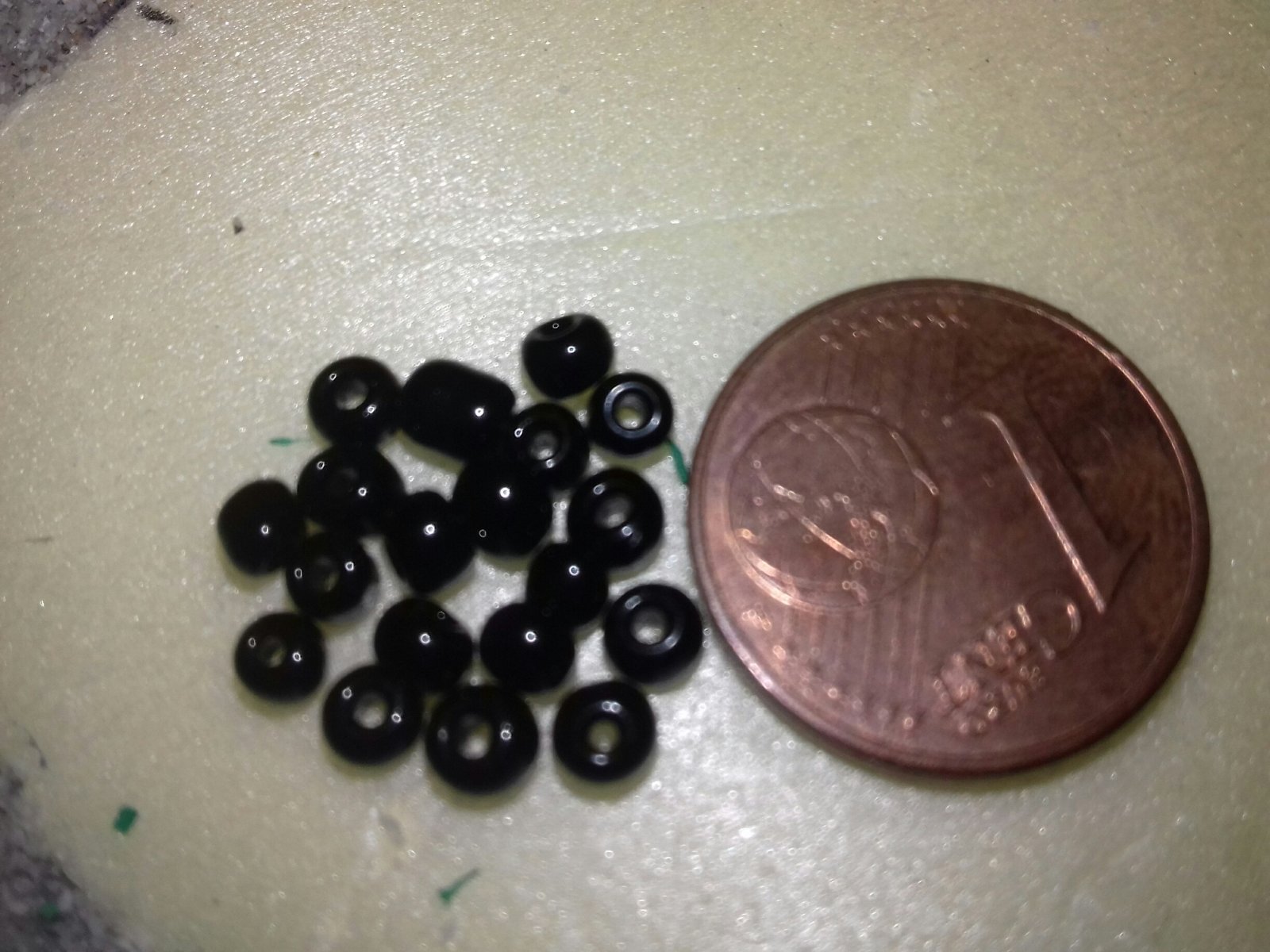Quelle per braccialetto sono le mie.....c'è bisogno di più di 20 perline per coprire la superficie di una moneta da 1 centesimo
