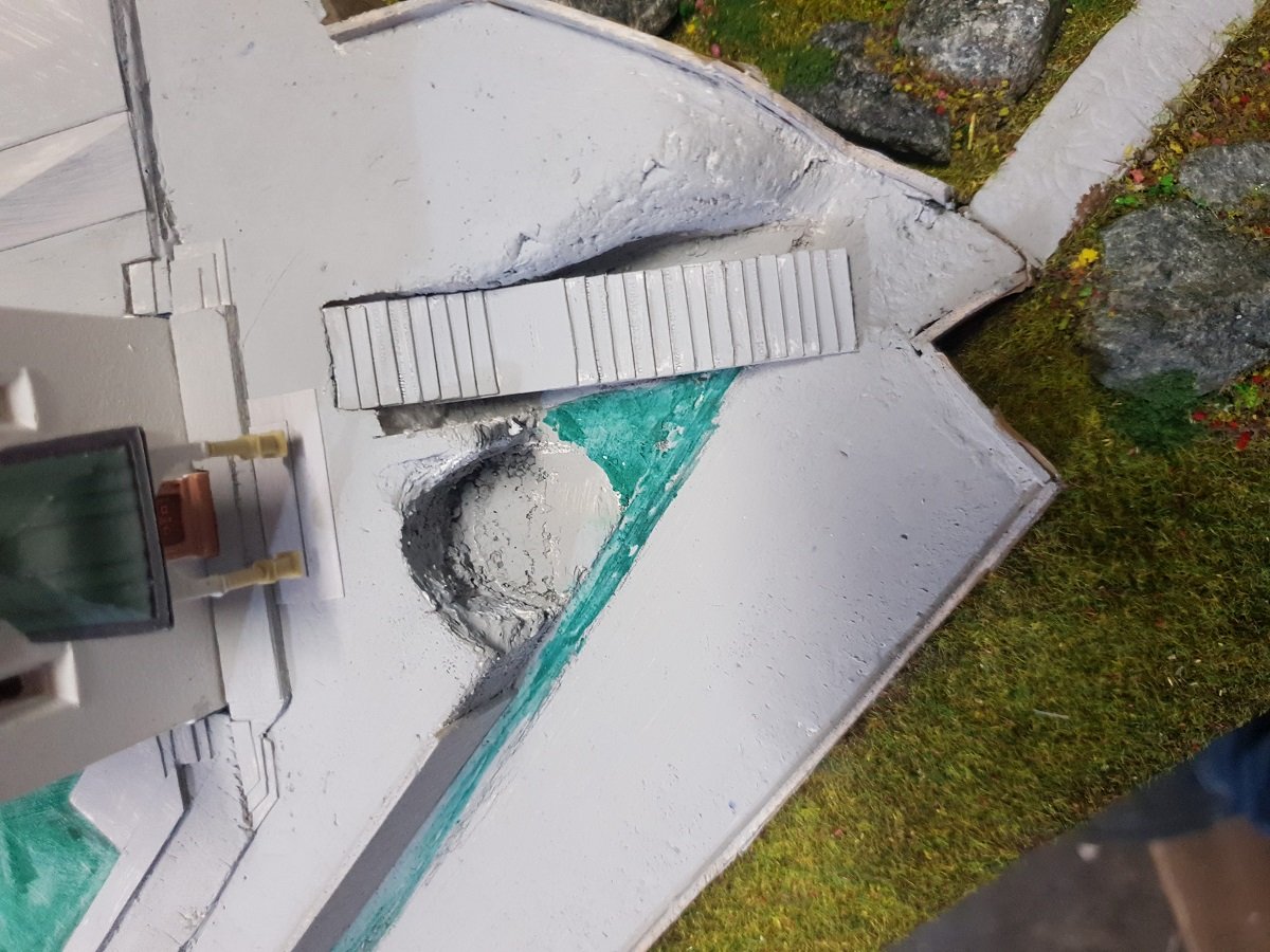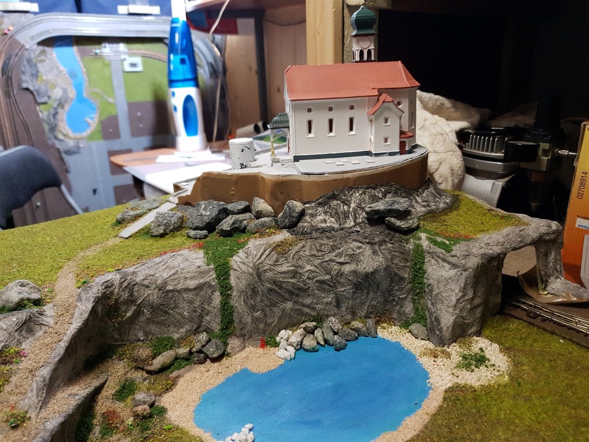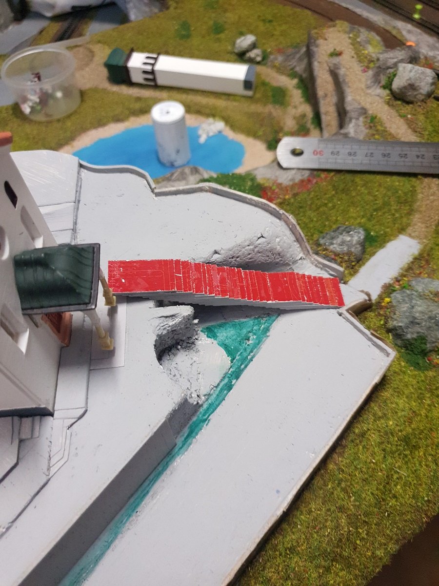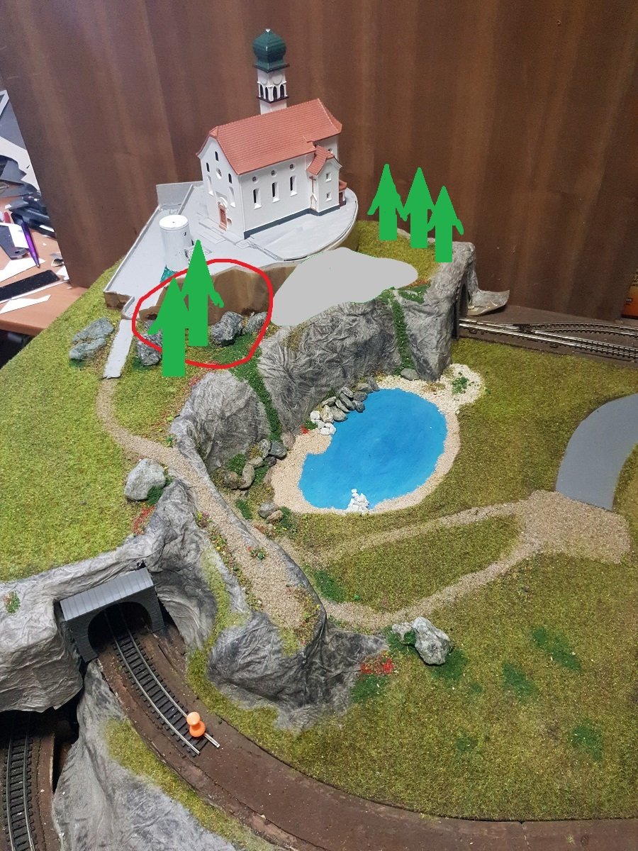 Charlie63 ha scritto: venerdì 26 ottobre 2018, 22:43 In quanto a spostarla più a destra, dovrei allargare ancora la copertura e spostare il lago, (un lavoraccio...) oppure fare uno strapiombo quasi a filo della galleria... e non mi pare il caso.