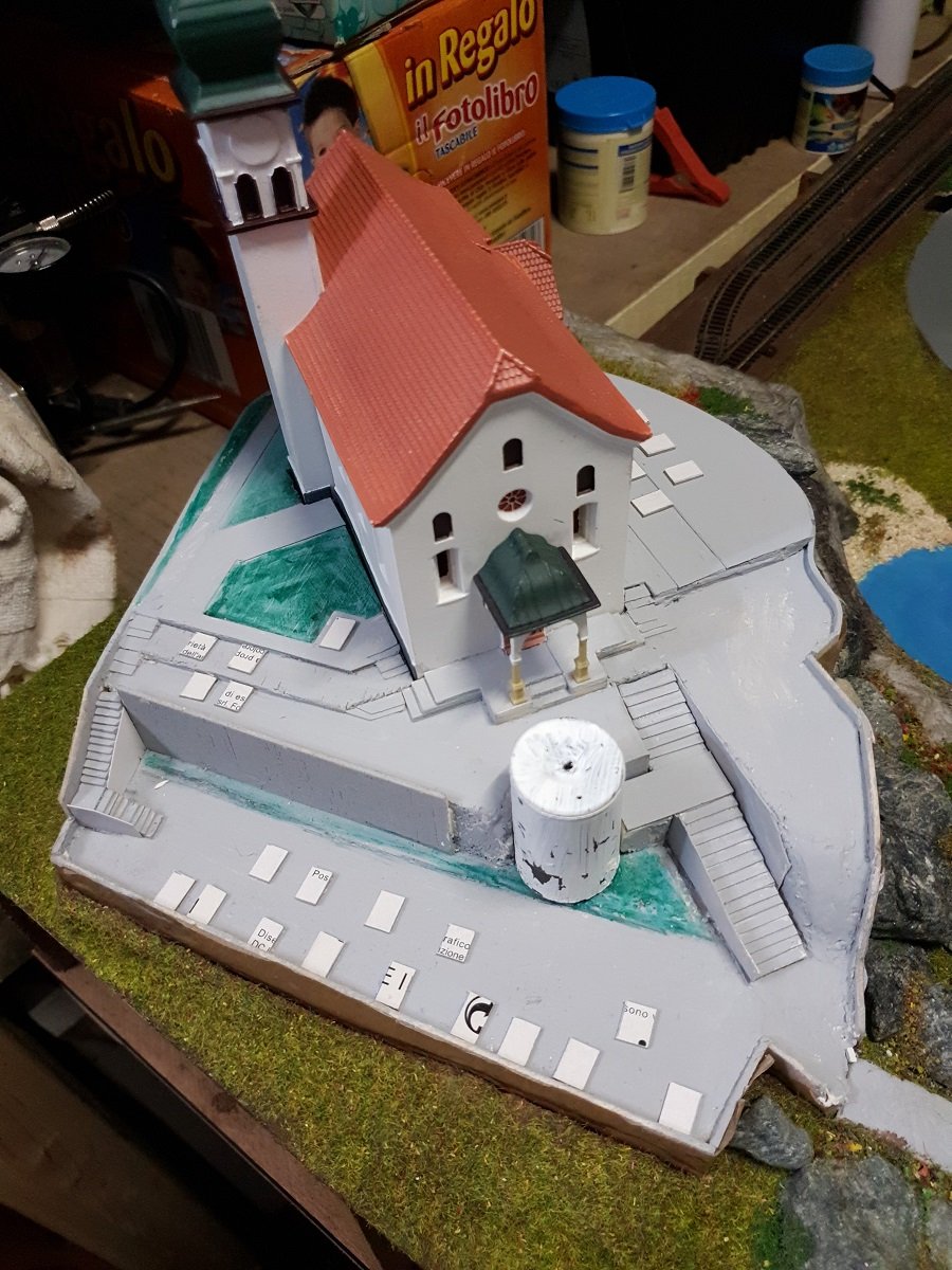 Quello che io invece trovo un pò anomalo è che la chiesa sia spostata un pò troppo a sinistra, quasi fuori dal contesto del plastico, io la sposterei un pò più a destra, lo spazio necessario ci sarebbe, ma sono soltanto punti di vista.