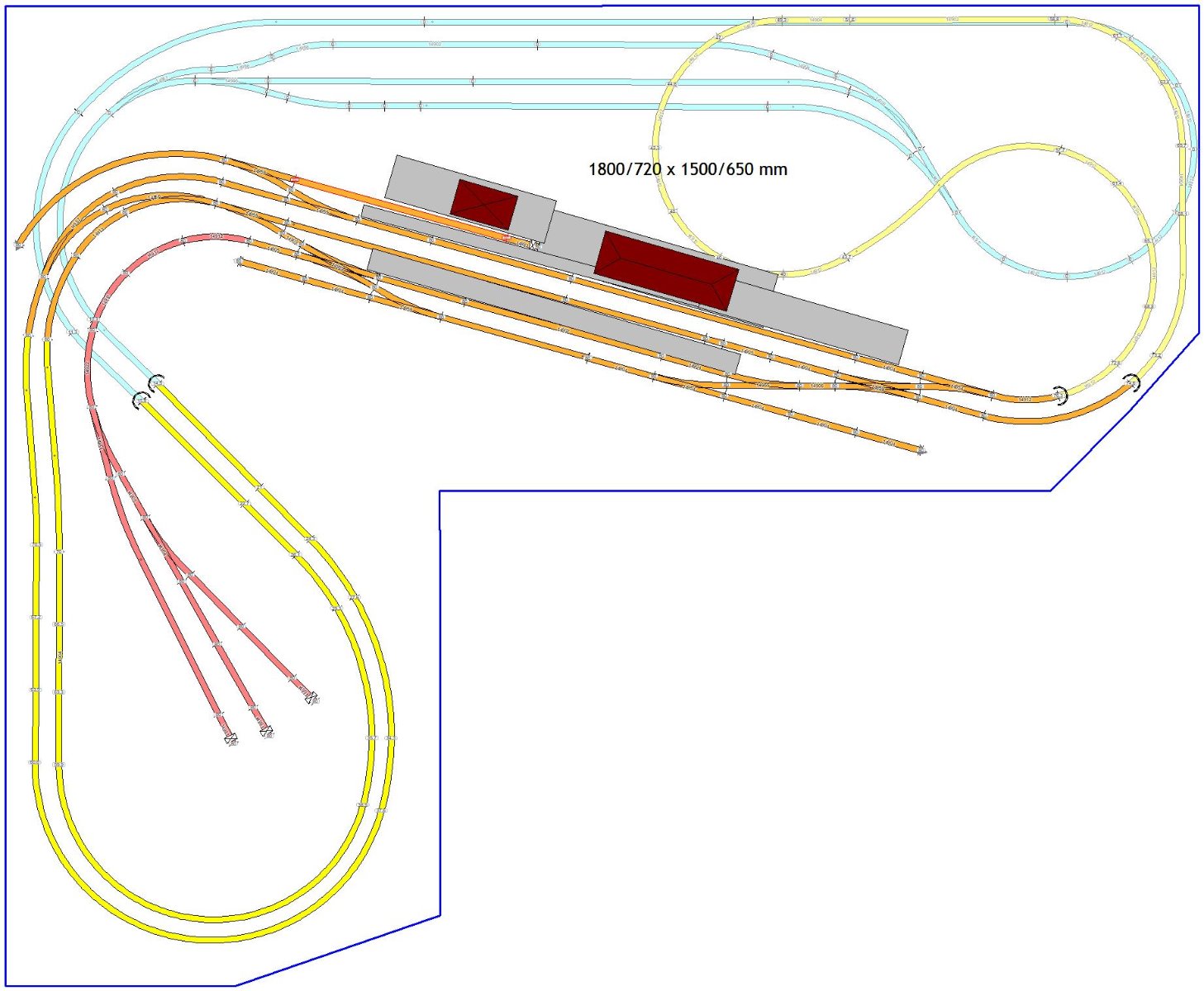 L'idea presa è quella di partire con un plastico a base rettangolare e un domani avere la possibilità di trasformarlo da rettangolare a L.