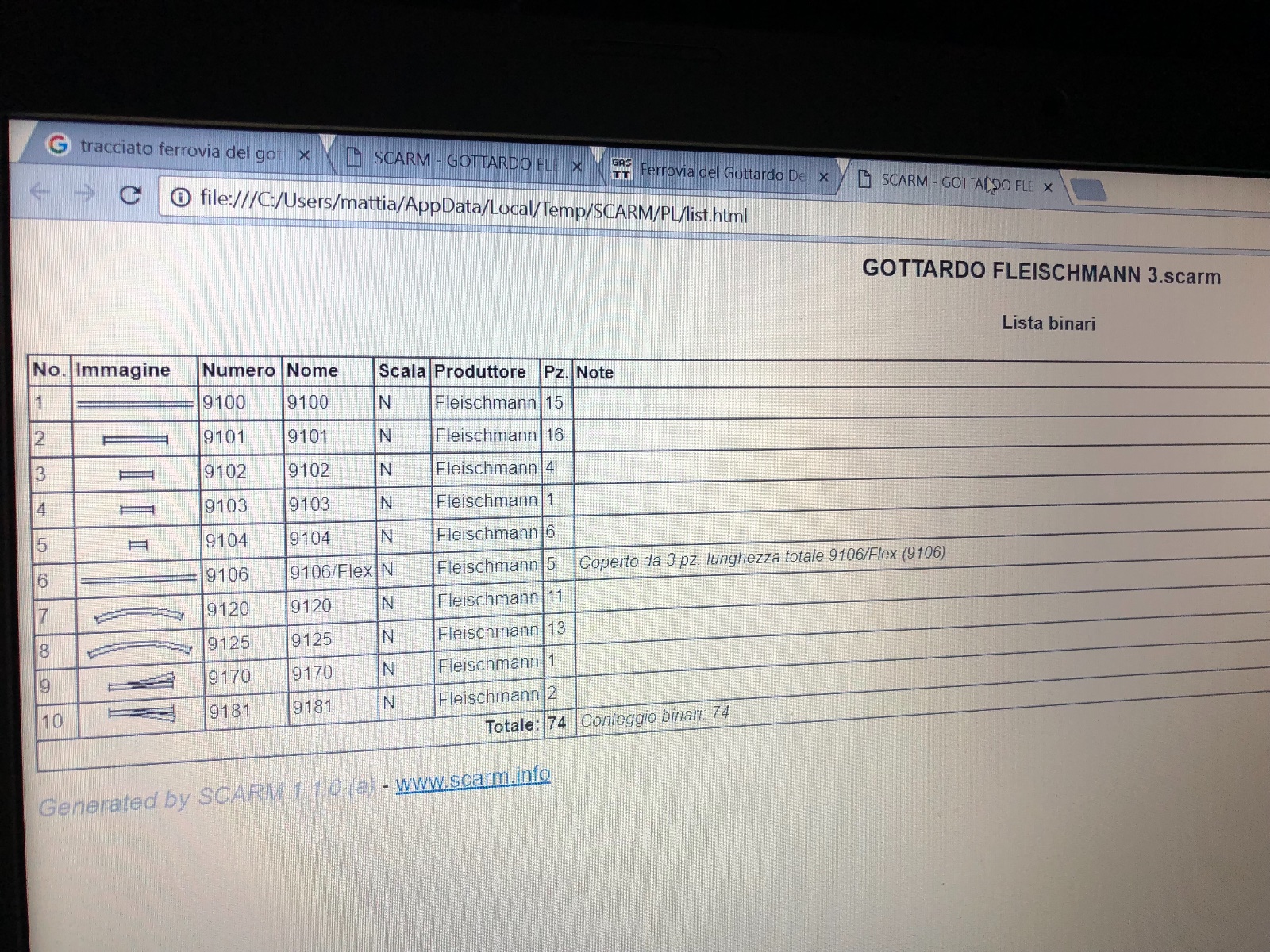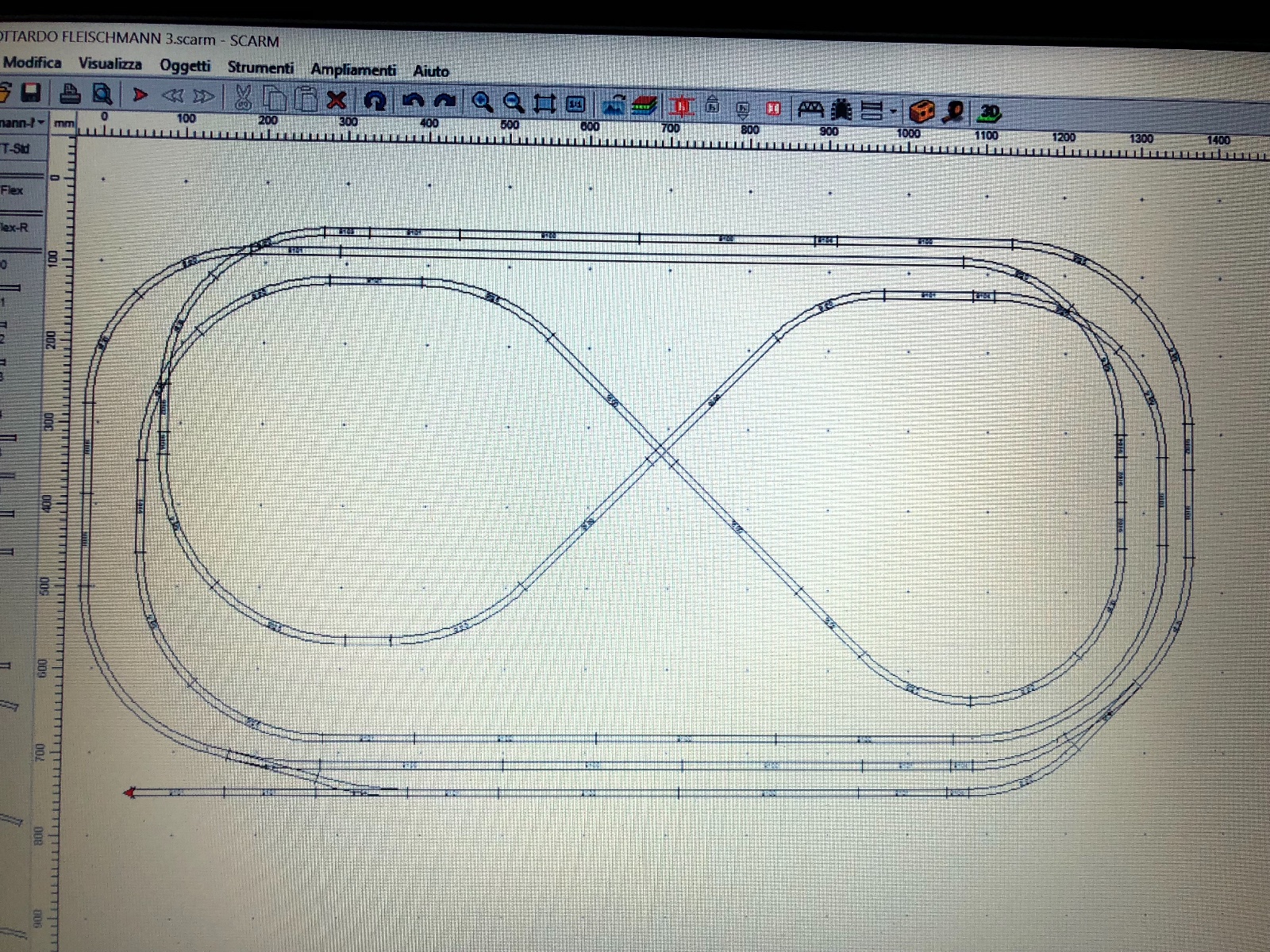 La invio in file PDF perchè è in A3 e quindi più visibile non ho utilizzato i binari con raggio più stretto allego anche la lista binari