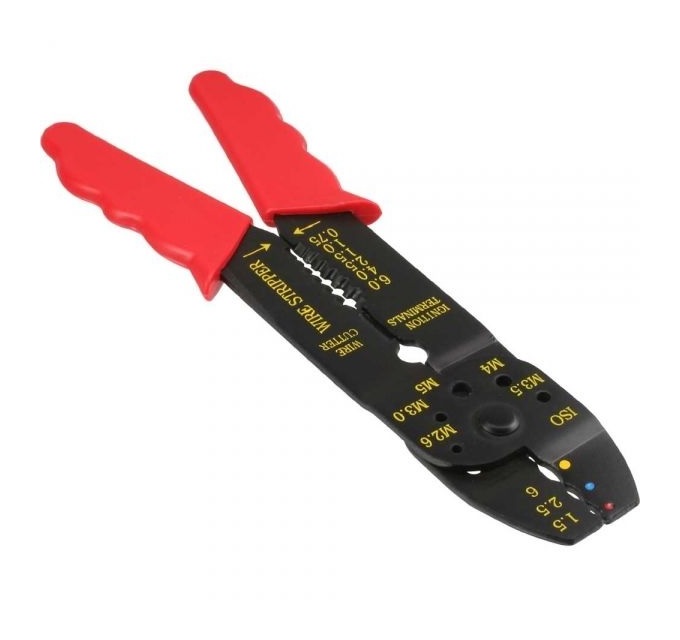 I puntalini preisolati come la foto sotto non sempre rispettano i colori precedentemente indicati per cui occorre verificare nella confezione a quale sezione fanno riferimento Sconsiglio fortemente l'acquisto della pinza come da foto sotto, generalmente non offrono una buona compressione del puntalino/capicorda che se non verificata potrebbe non essere sufficiente a trattenere il conduttore ad esso collegato, l'unico pregio di questa pinza è che talvolta offrono un tranciaviti integrato molto interessante nel nostro caso Se avete dubbi o domande chiedete pure