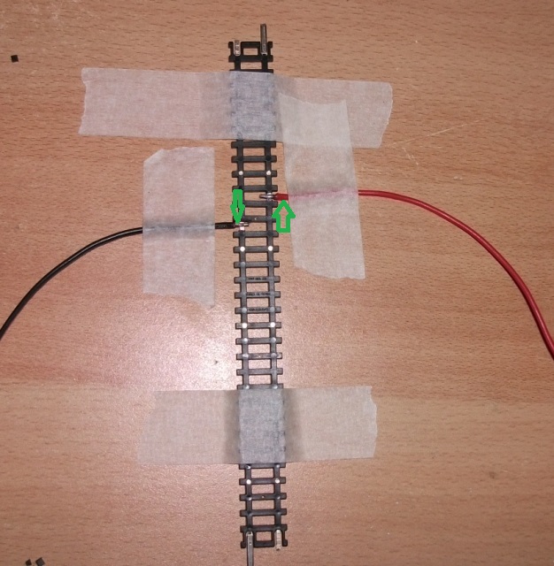 Mentre se desiderate un tratto di filo corto appena visibile l'operazione di saldatura del cavetto conviene farlo sul fianco esterno della rotaia E' MAI INTERNO , rimane un po più scomodo ma vi risparmiate qualche passaggio inoltre in caso di emergenza risulta più veloce fare un saldatura di riparazione senza andare sotto alla plancia