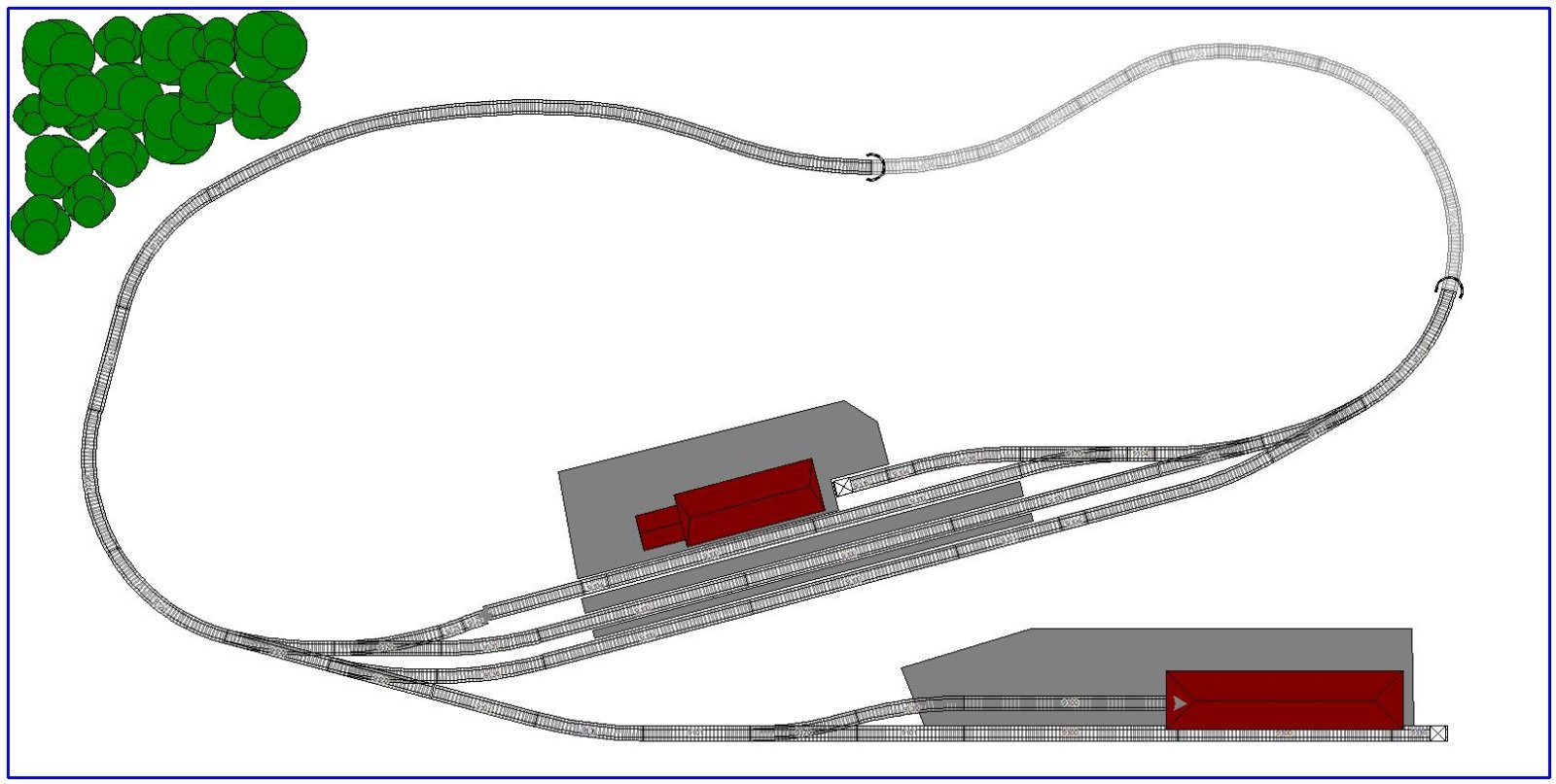 Ho aggiunto qualcosa! Ma qua mi fermo, non riesco oltre, non ho ne mezzi ne preparazione. Sulla base della geometria dei binari Fleischmann puoi ricavare i pezzi da comprare, ma qualcosa avanzerà di certo! Poi vedi la coerenza del tracciato col paesaggio. Attento, è 10 cm più profondo: la stazione è all'esterno!