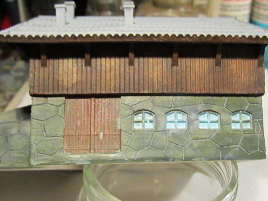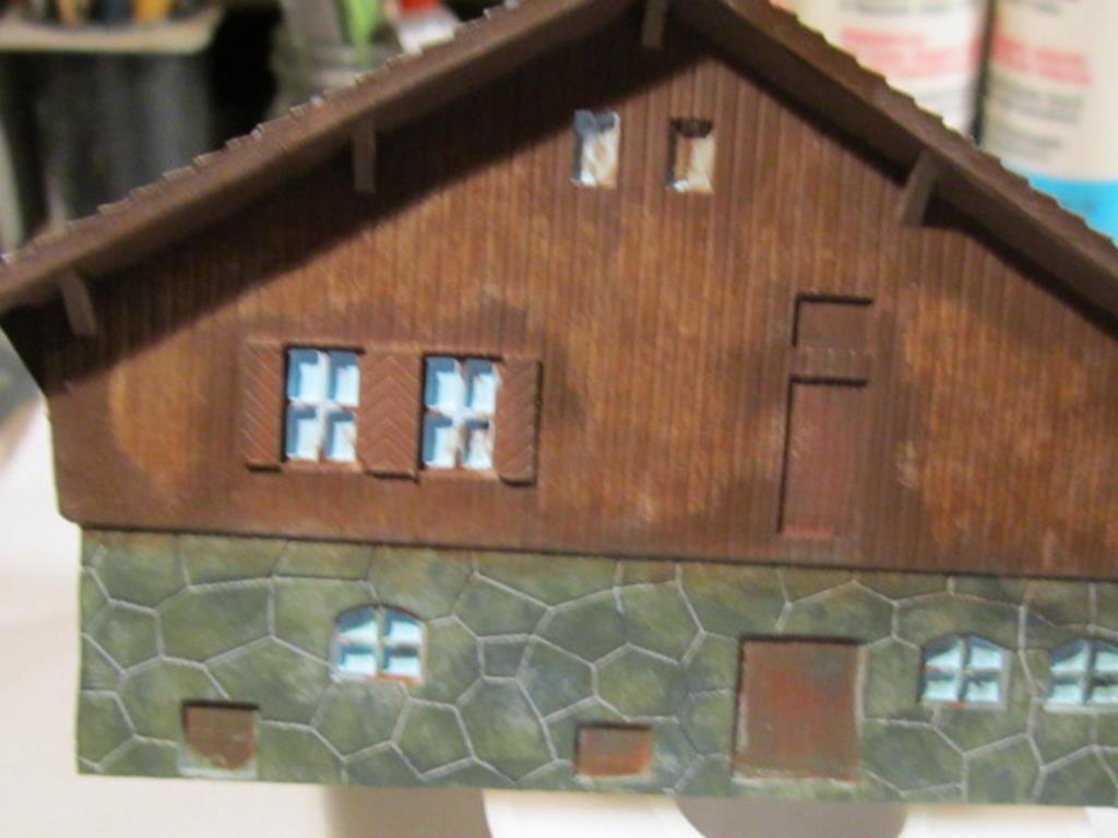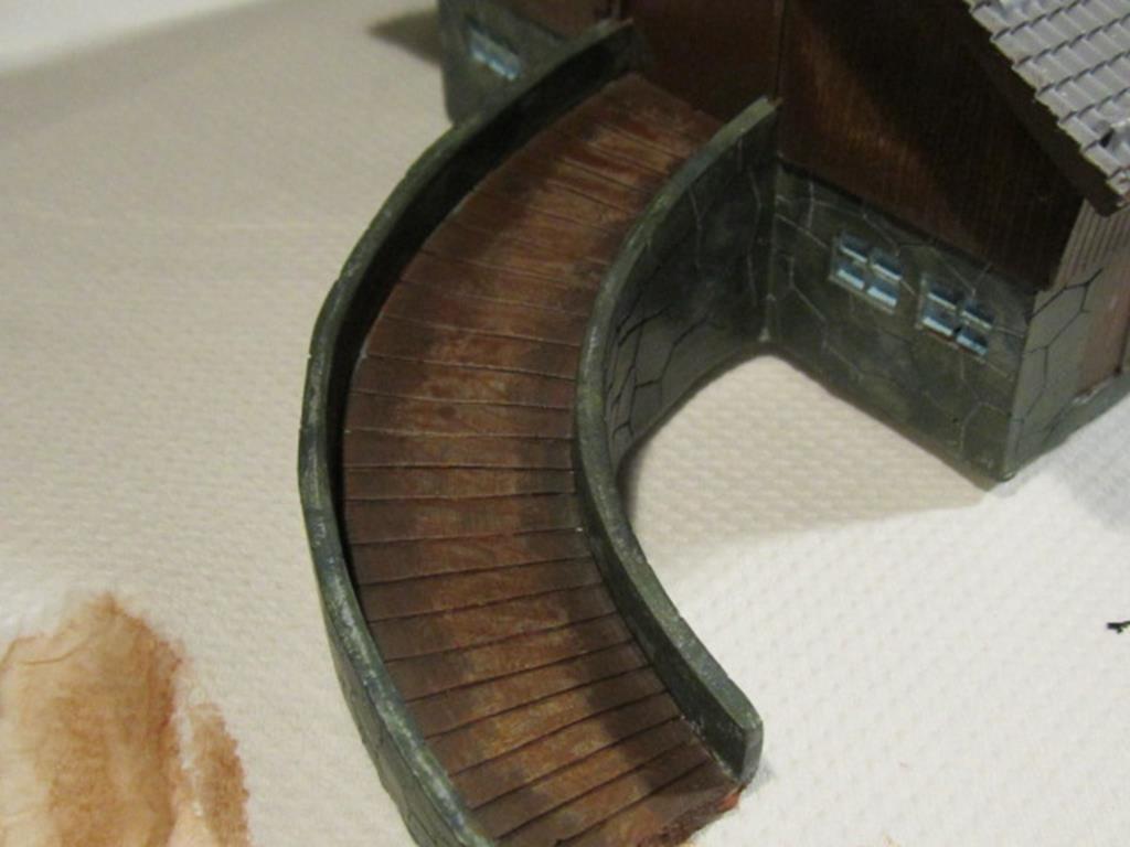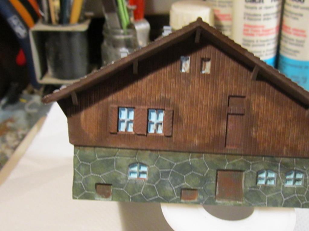 Pertanto ho enfatizzato con del nero acrilico opaco molto diluito, quindi passato in alcune aree per marcare angoli o zone basse generalmente più scure, anche qualche dettaglio in rilievo come le porte.