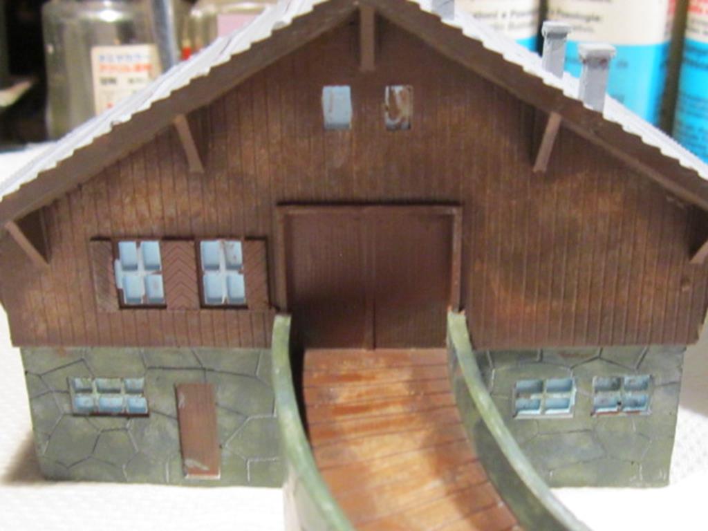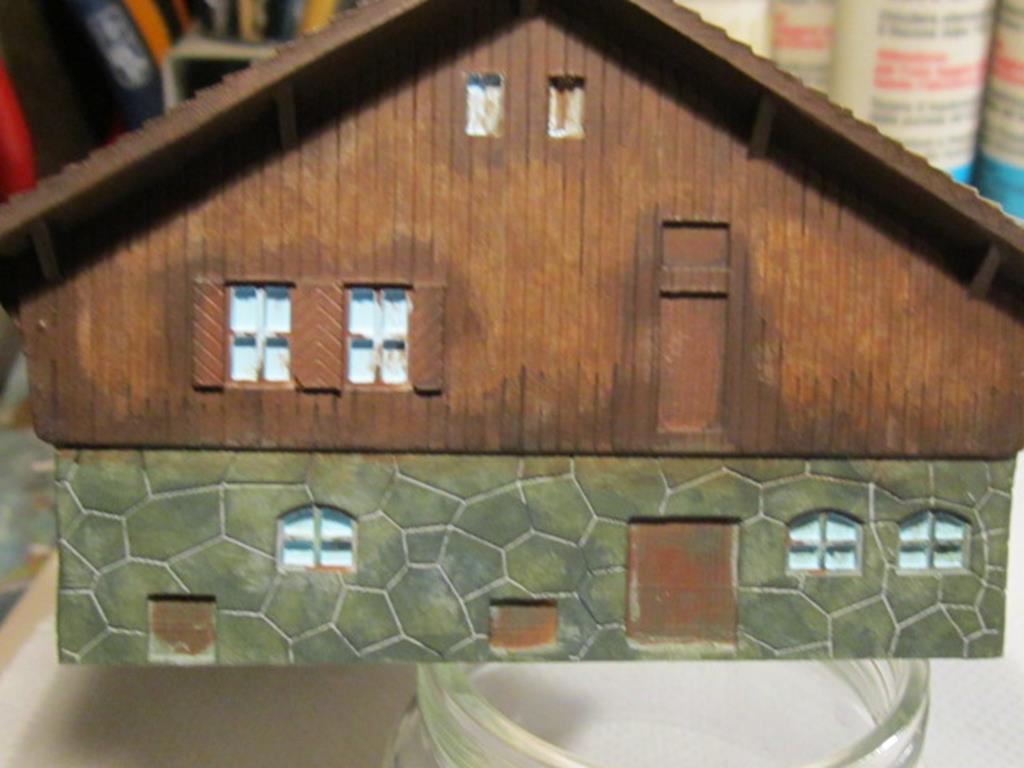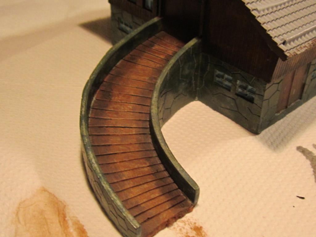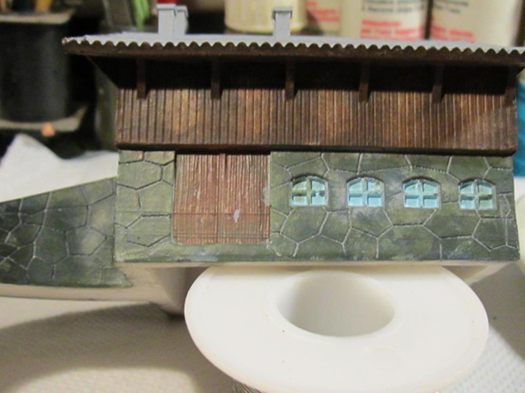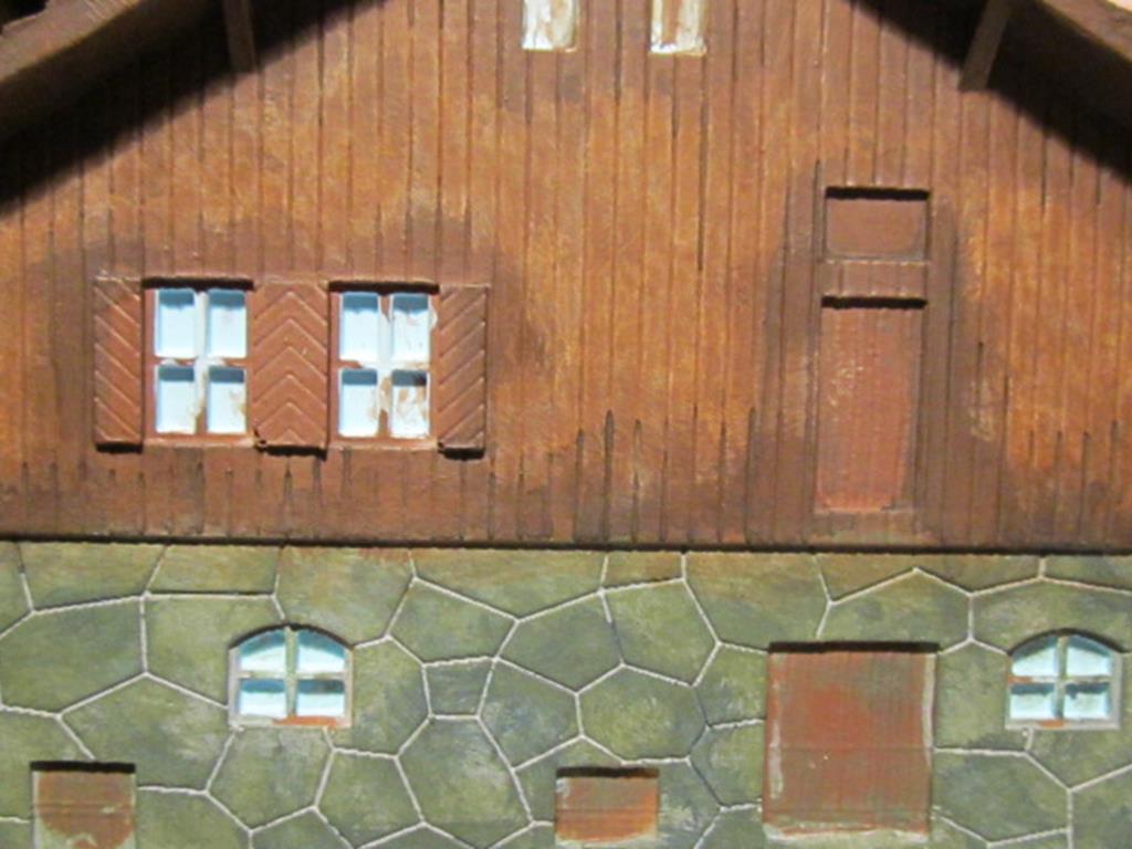 Pertanto ho enfatizzato con del nero acrilico opaco molto diluito, quindi passato in alcune aree per marcare angoli o zone basse generalmente più scure, anche qualche dettaglio in rilievo come le porte.