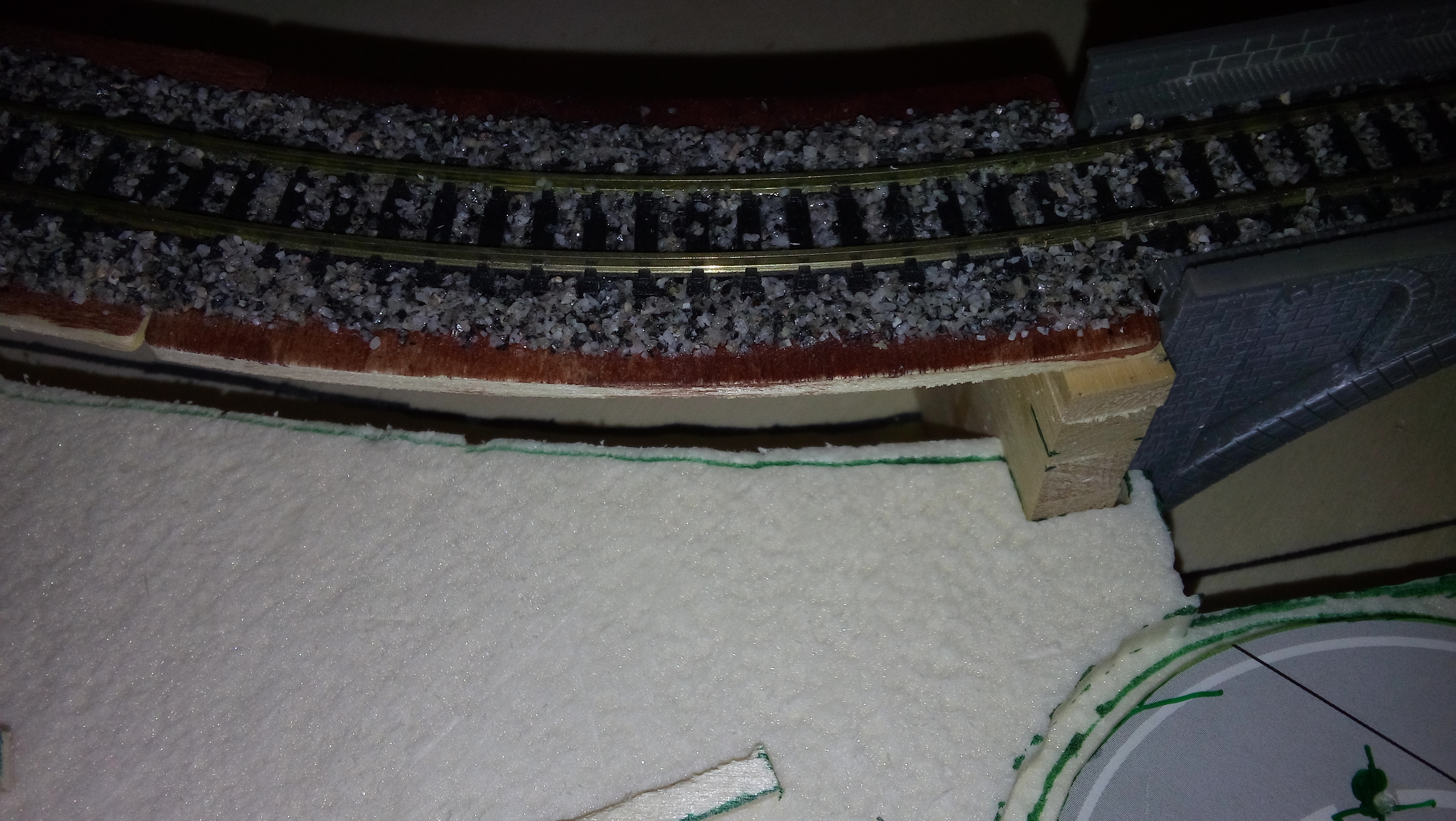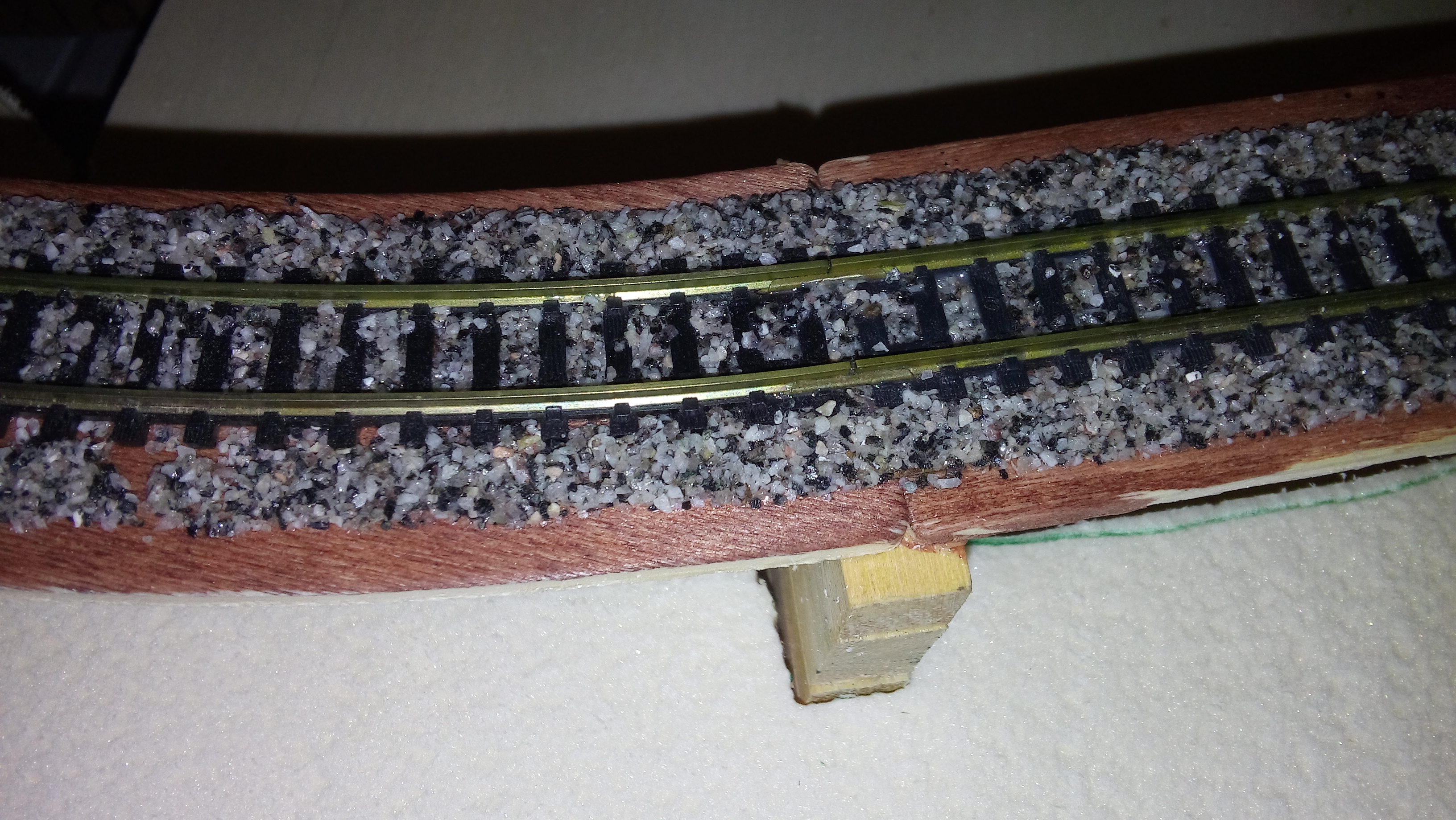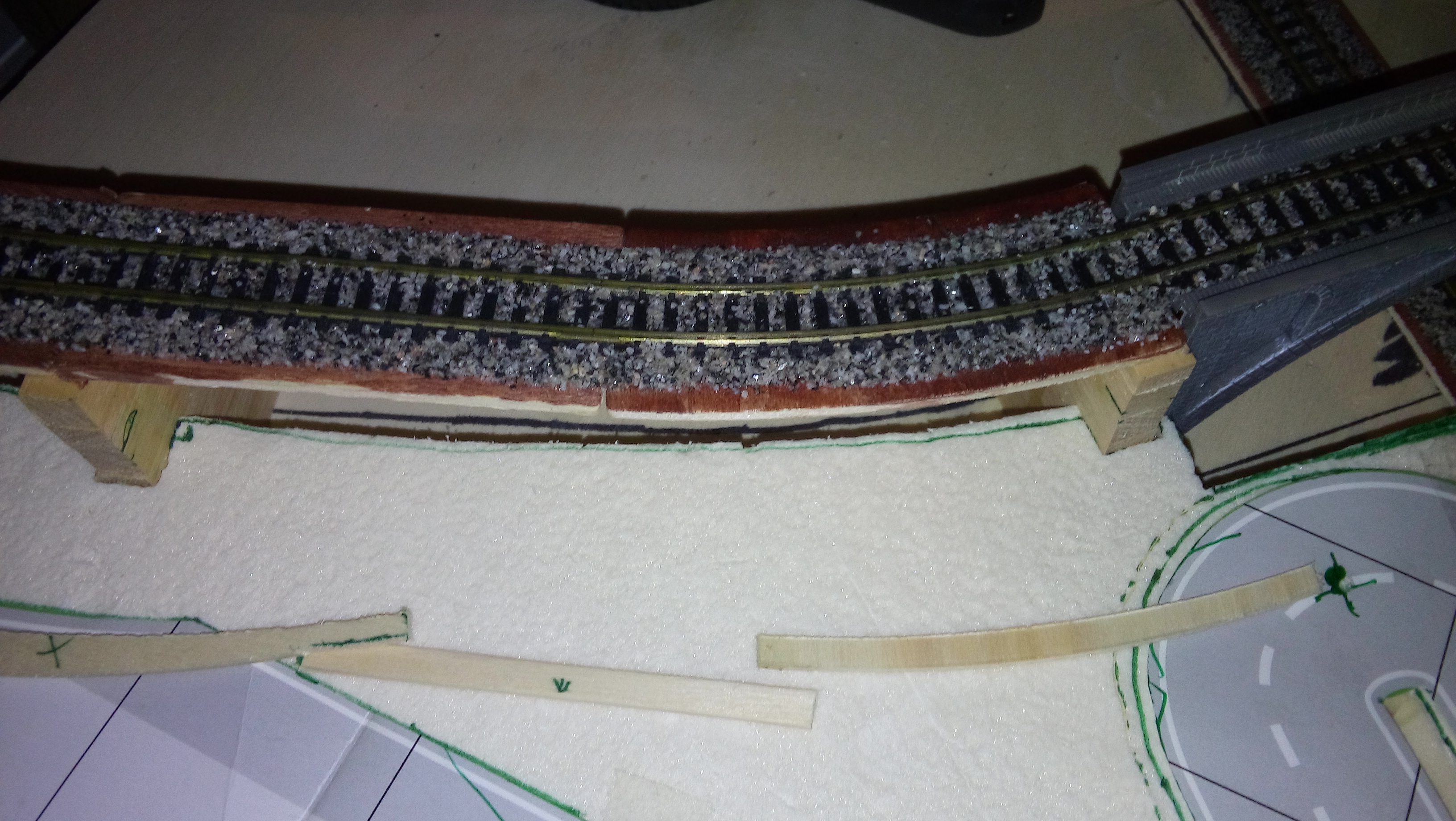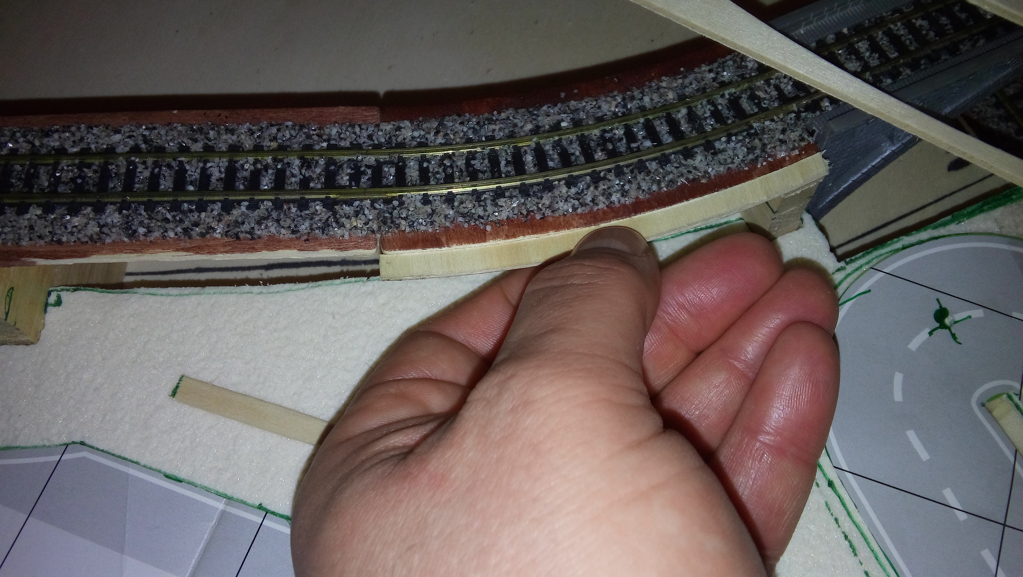 La plancia è molto più larga del binario ed una volta posato il ballast, rimarrà comunque lo spazio per posare anche la balaustra, almeno così mi pare.