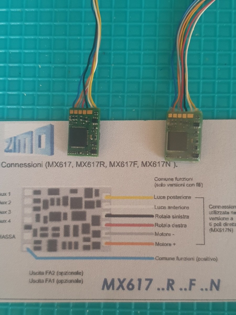 Decoder utilizzato: Zimo Mx617 a 7 fili (+ altri 2 canali sulla pcb da saldare non utilizzati)