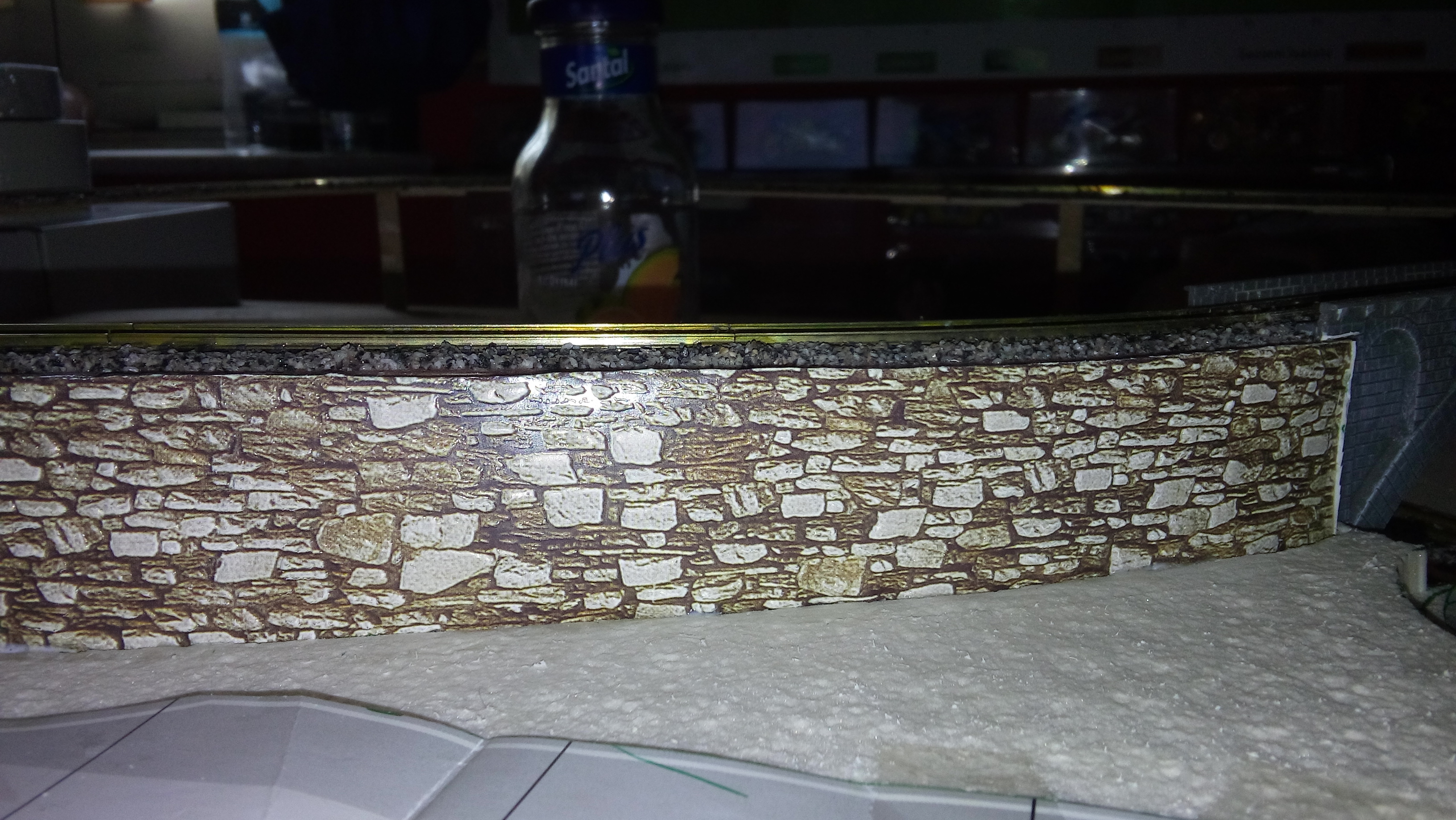 il muro si presenta inclinato e non a 90° con la base più ampia rispetto al piano binario ed è decisamente meno "giocattoloso", il parapetto appare qualitativamente più apprezzabile e molto più proporzionato, è presente anche il cordolo di cui si parlava in precedenza [102]