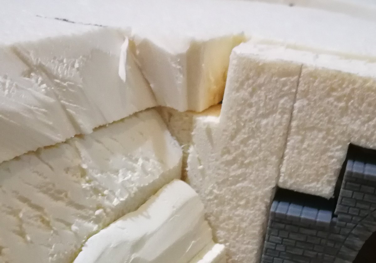 Alceo, ti consiglio di abbandonare il polistirolo a bassa densità ed utilizzare quello estruso ad alta densità, ė molto più lavorabile, meccanicamente più robusto inoltre eviti le fastidiose palline