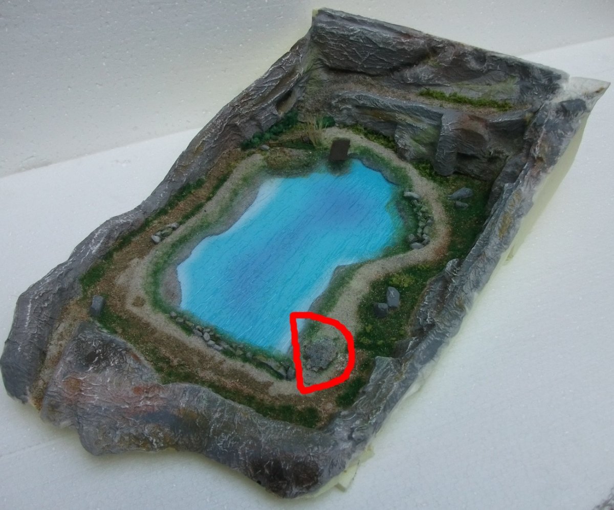 Sono rimasto a bocca aperta nell'ammirarlo, vi assicuro che la foto non gli rende giustizia, ha una tale dovizia di particolari, che io non me li sognavo neanche lontanamente, perfino un piccolo molo dove posizionare un pescatore, che dire poi della profondità del laghetto che appare troppo vero ?